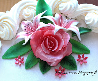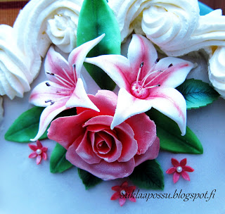 Mamma (eli oma äitini) tarjosi kakkukahvit ja toivoi minulta kakku, jossa olisi koristeena muutama kukka. Muuten sain kakun suhteen vapaat kädet.