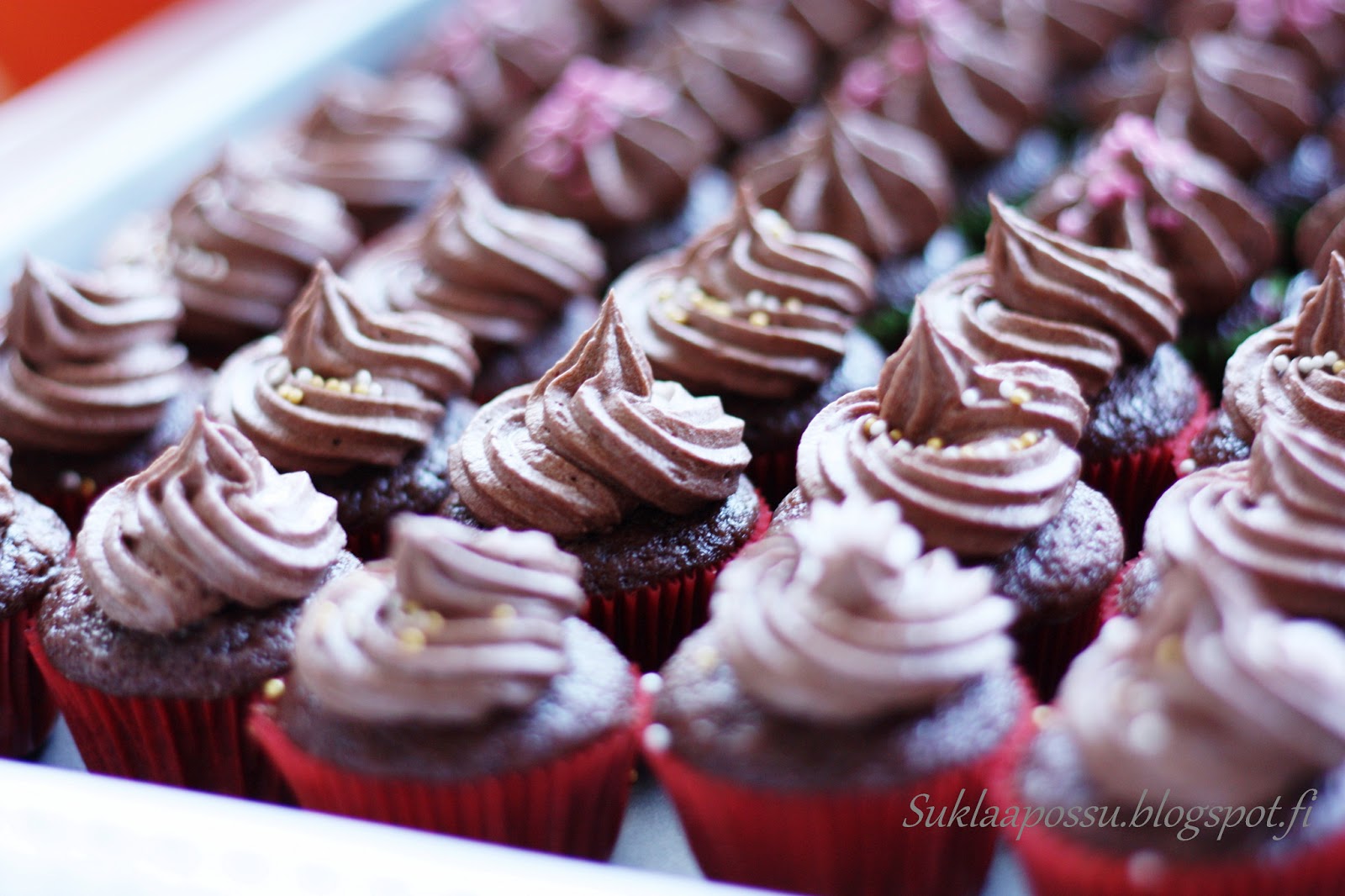 Ilman päällistä nämä olivat kuivemman oloisia kuin mokkapalamuffinit I. Kuorrutteesta tuli kuitenkin niin paljon makua ja kosteuttakin, että kokonaisuudessaan tosi hyvää. Nämä olivat makeampia kuin mokkapalamuffinit I-versiot. Molemmat todella hyviä, varsinkin tällaisen suklaa-addiktin mielestä kuin minä! 🙂