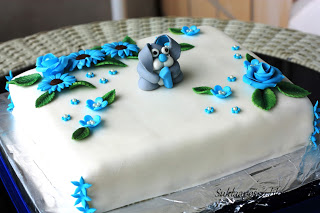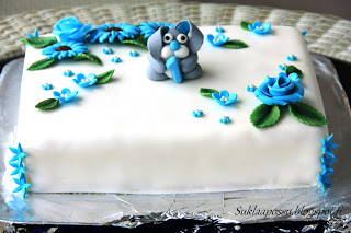 Pupu marsipaanin ja sokerimassan sekoitusta, kukat sokerimassasta