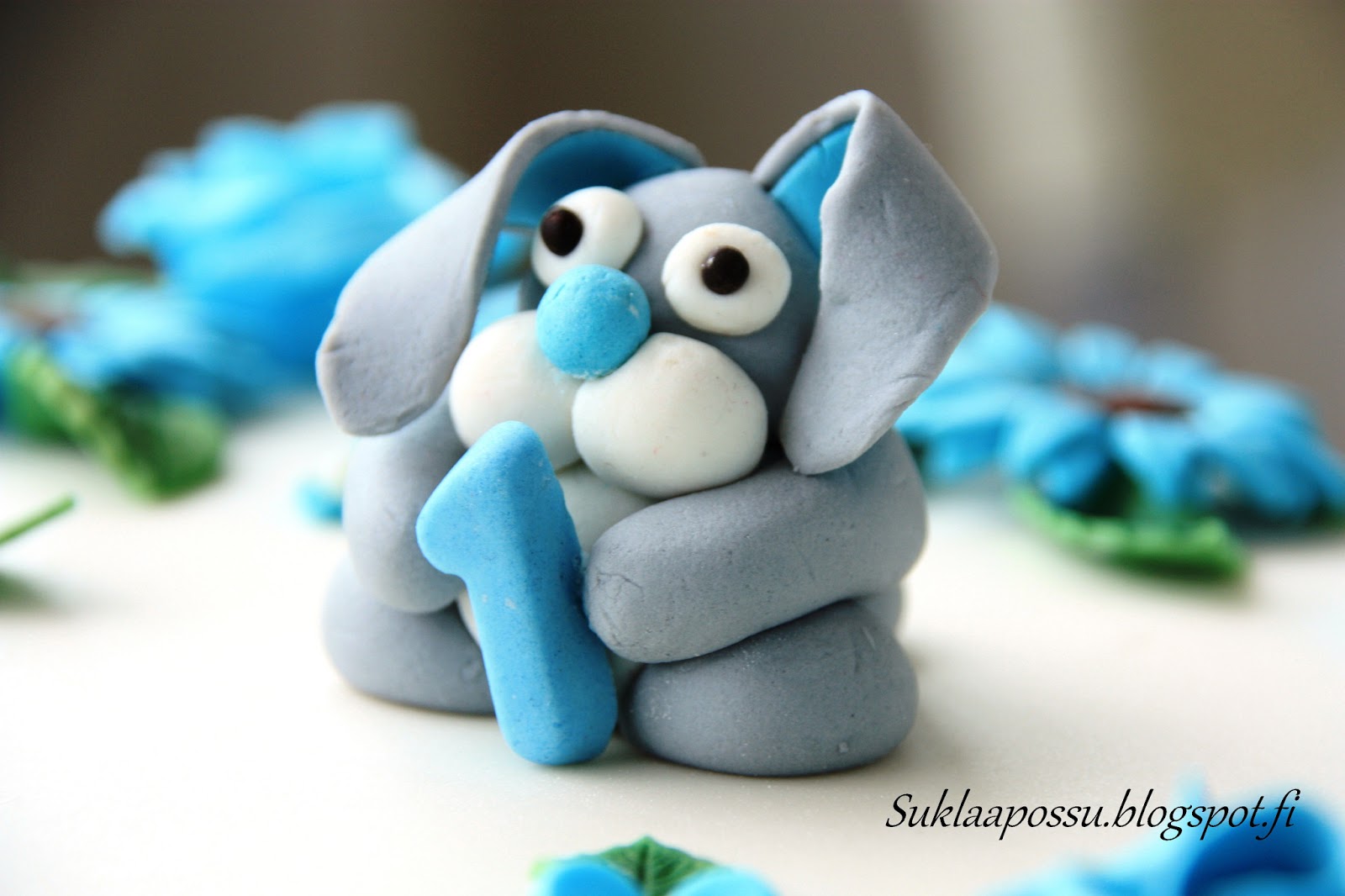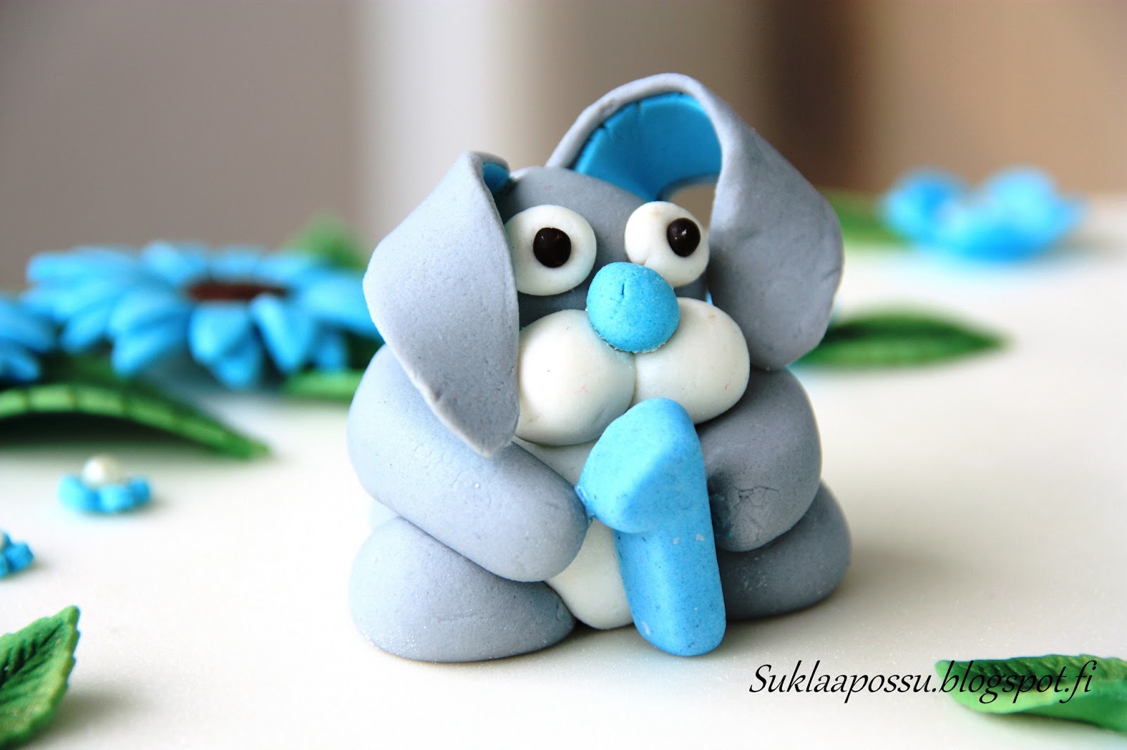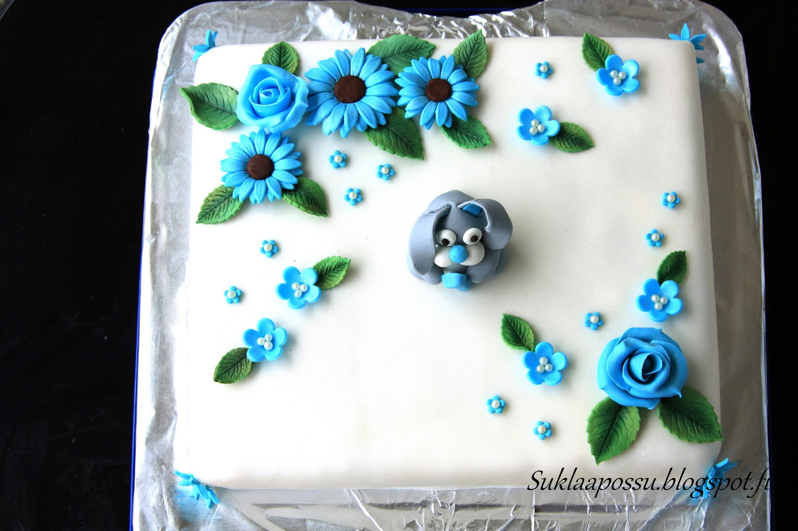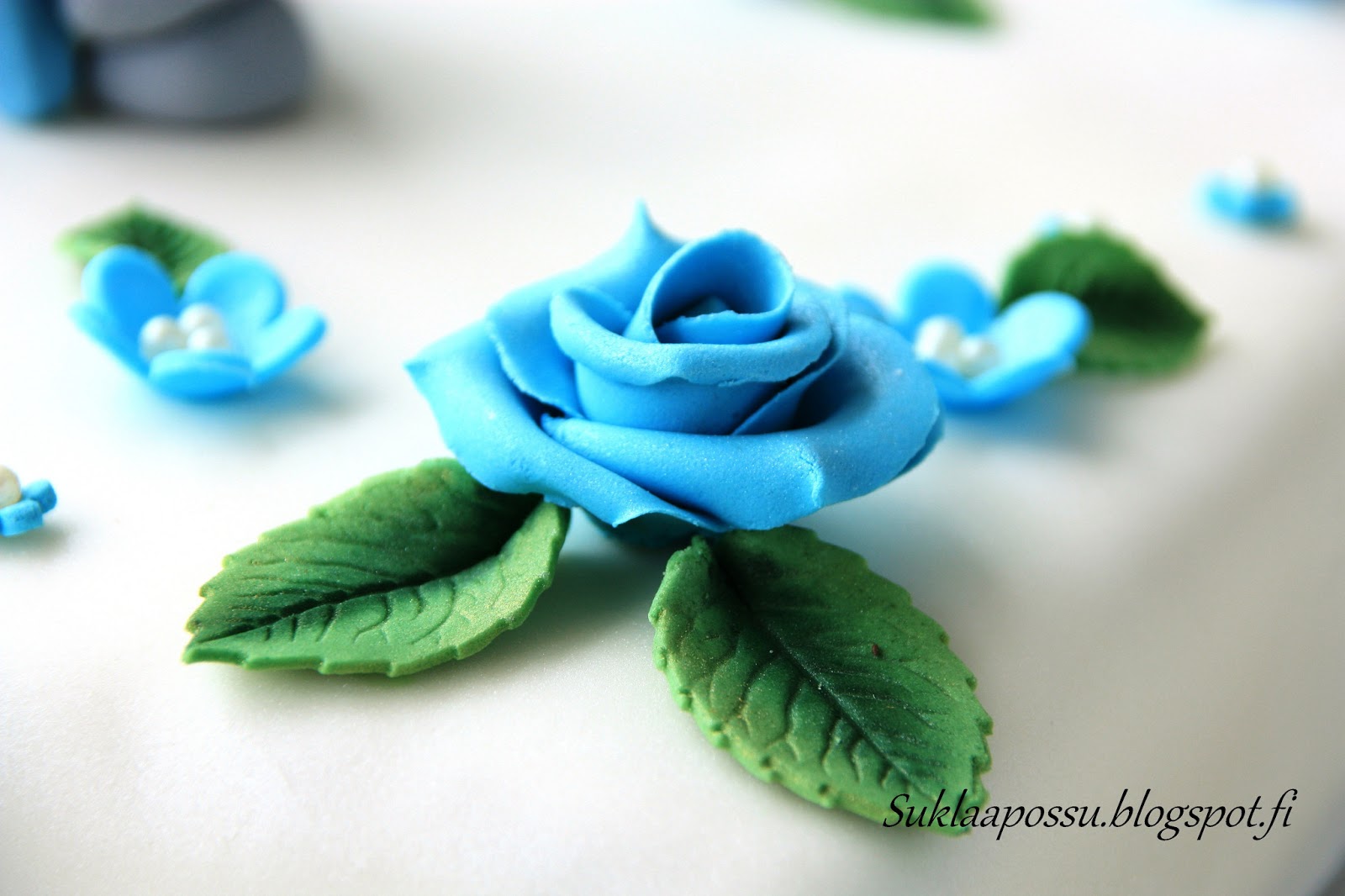 Pupu marsipaanin ja sokerimassan sekoitusta, kukat sokerimassasta