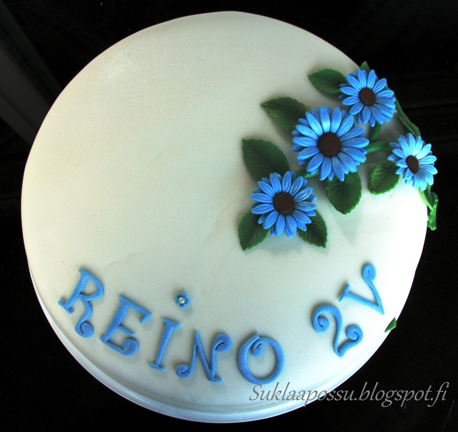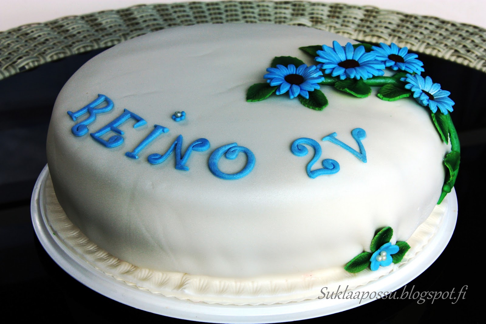 Päällys vaniljan makuista vaahtokarkkimassaa, jota meni n. 1 kg. Päällyksen laitto jännitti etukäteen hirmuisesti. Eikä se ihan ongelmitta sujunutkaan. Päällys repesí ja aivan väärästä paikkaa. Piti koko kakun koristelu miettiä äkkiä uudestaan. Massan päällä suihkaus kimallesprayta.