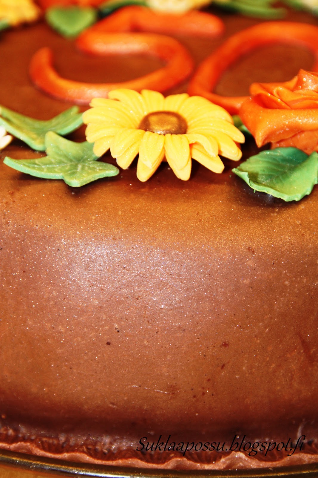 Sulata suklaa. Sekoita joukkoon siirappi. Lisää vähitellen tomusokeri ja kaakaojauhe. Anna jähmettyä. Jos kaulitessa tarttuu kiinni alustaan (harvinaista), lisää hieman kaakaojauhetta.