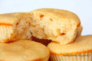 Sekoita kaikki taikinan aineet sekaisin. Jaa reilu puolet taikinasta vuokiin. Laita n. 1 tl Lemon curdia jokaisen muffinin keskelle ja lisää loppu taikina. Paista 200 asteessa n. 12-14 min.