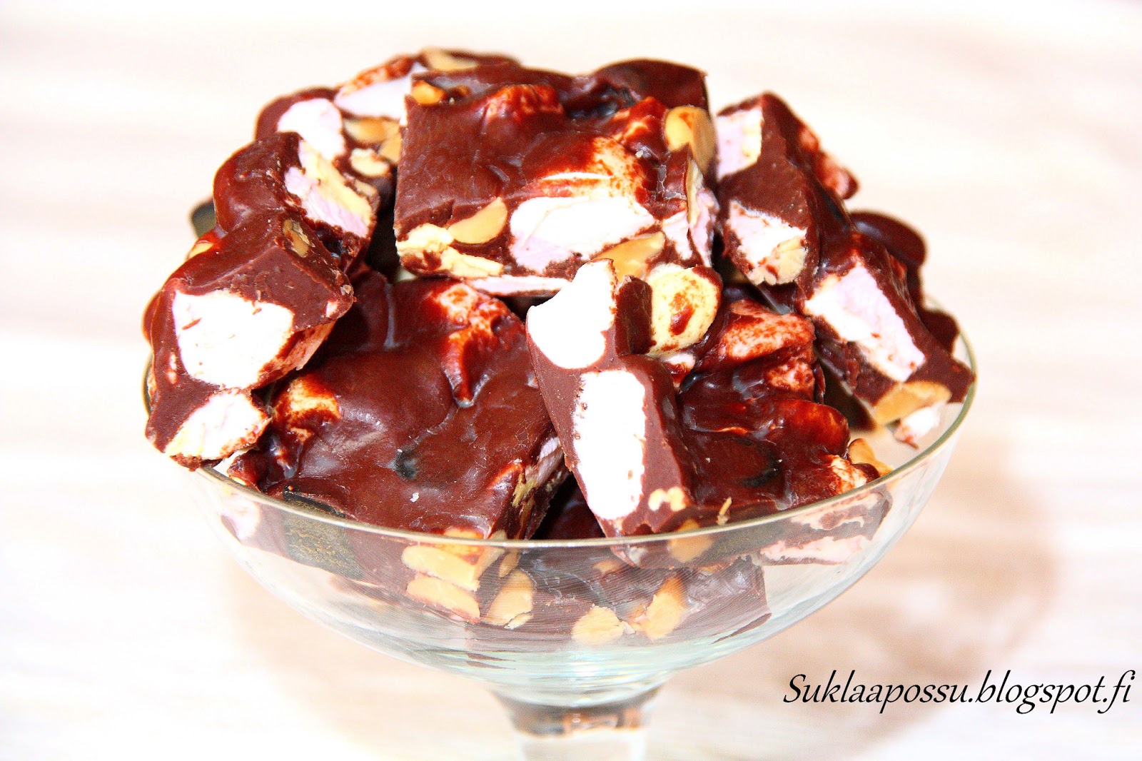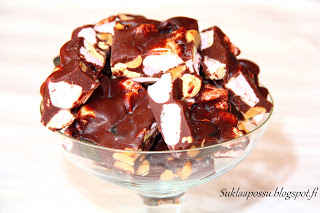 Tajusin juuri etten ole ottanut juuri näistä herkuista kuvia. Yllä olevassa kuvassa on Rocky Road-versio, eli namit, jossa mukana vaahtokarkin palasia. Mielestäni nämä ovat kuitenkin triplasti parempia ilman vaahtokarkkia.