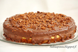 En ollut tyytyväinen edellisen daim-kakunpohjaan. Löysin Hellapoliisilta hyvänkuulloisen daim-piiras-ohjeen, jonka pohjaa halusin testata. Muokkasin samalla täytettäkin hieman samaisen ohjeen perusteella.