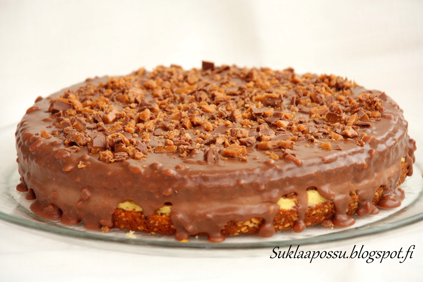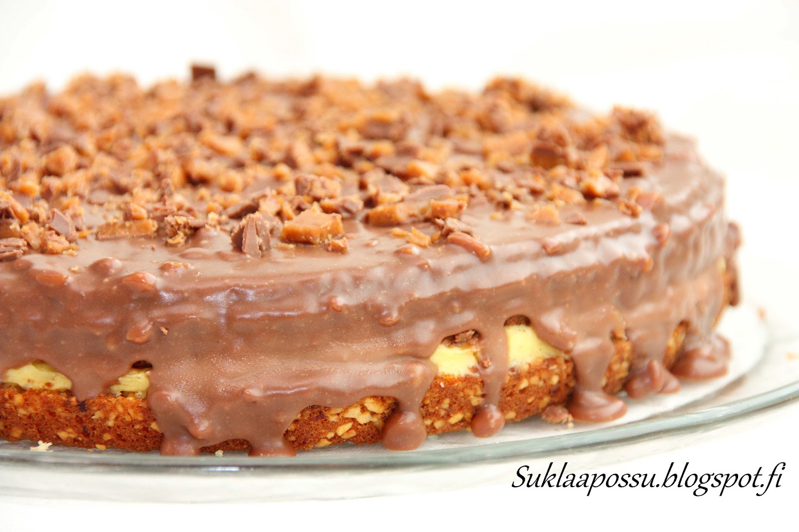 Itse pidin ehkä kuitenkin edellisestä versiosta, jossa kreemin joukossa oli myös valkosuklaata. Nyt kreemiosio jäi liian plissuksi makuuni. Pohjakaan ei juuri eronnut daim-kakku I-version pohjasta, joten näillä kakku-testeillä versio I vie voiton makeudellaan ja maukkaudellaan.Päiv. Tein vielä loppudaimista kolmen ja neljän suklaan kakut ja ne olivat kaikkeista parhaimmat niin pohjansa kuin koostumuksensa ja makunsa puolesta! Jos kaipaa daim-piirakkaa, kannattaa käydä katsomassa niiden ohje.