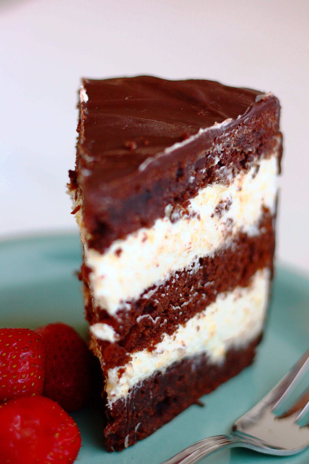 Avattu pussi kuivattuja aprikooseja oli kummitellut kaapissa jo pitemmän aikaa. Tein niistä soseen ja ajattelin leipoa soseesta jotain. Löysin sekä Kakkumonsterilta että Suklaapandalta erittäin ihanan kuulloisen suklaakakkupohjan ohjeen ja pitihän niitä molempia päästä sitten kokeilemaan! Tein siis kaksi pientä kakkupohjaa, joita kokosin yhden kakun, johon käytin molemmilla ohjeilla tehtyjä pohjia. Samalla kehitin aprikoosisoseesta kakkuun moussetäytteen. Makumaailmaksi ajattelin jotain Sacher-kakkutyyppistä, mutta koska en itse pahemmin piittaa kyseisen kakun aprikoosimarmeladiosasta, tein aprikooseista miedomman makuisen moussen. Kakun väliin olisi sopinut mansikat paremmin kuin hyvin, mutta valitettavasti niitä ei ollut kakun kokoamishetkellä saatavilla. Onneksi saimme niitä pöytään tarjoiluhetkellä!