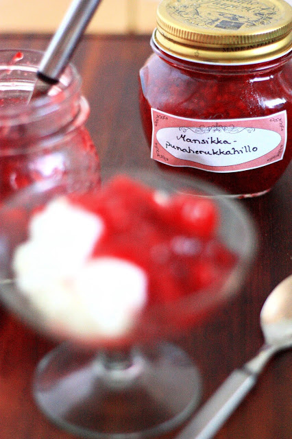Mansikka-punaherukkahillo on meidän perheen suosikkihillo. Se sopii rahkan tai jogurtin joukkoon, letun päälle, pannarin seuraksi tai vaikka kakun väliin… Eli oikeastaan mihin vain. Mansikka tasoittaa mukavasti punaherukan kirpeyttä (ja punaherukka tuo mansikkaan happamuutta).