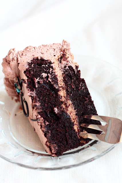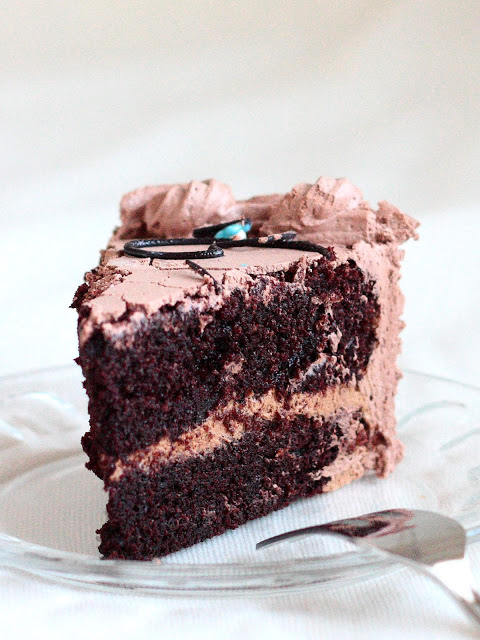 Ihanaa kun on paljon synttäreitä ja juhlia ja saa kerrankin hyvällä omalla tunnolla tehdä kakkuja 🙂 Laitan tämän ohjeen tähän väliin ja jatkan sitten taas juhlatarjoilujen kirjoittelemista.. Tämä kakku matkasi töihin miehen synttäreiden kunniaksi jo viime viikolla. Innostuin fazeriinakakusta niin paljon, että halusin tehdä taas suklaakakkua. Testasin samalla tekotavaltaan ja aineksiltaan hieman erilaista pohjaa, jonka kehuttiin olevan kostea. Pohjaan tuli nesteeksi kahvia, joten päätin laittaa myös täytteeseen ja kuorrutukseen sitä. Tästä tuli kunnon mokka-suklaakakku 🙂