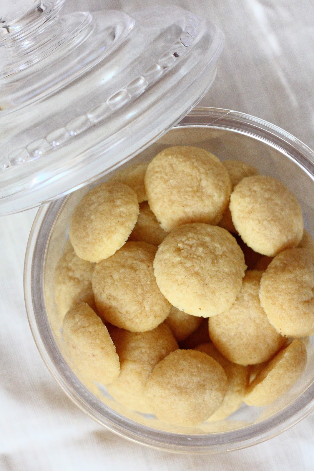 Tämä ihana Belle Baie:n sivuilta löytynyt ohje löytyykin jo blogistani, mutta laitan sen tänne uudestaan kuvan kera. Kuva tuli otettua pikapikaa, joten se ei ole kovin hääppöinen, mutta näkeepä siitä kummosia palluroita nämä olivat. Kuvat oton jälkeen ripottelin pinnalle vielä tomusokeria. Kuten alkuperäisohjeessakin, keksien päälle olisi voinut laittaa vielä sulaa suklaata. Mutta maistuivat ne näinkin. Nämä pehmeän kosteat pallurat hävisivät juhlapöydästä tosi nopsaan 🙂