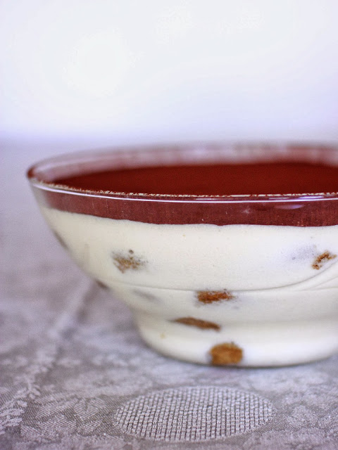 Sain itselleni tuon reseptin jo aikoja sitten, mutta vasta nyt päätin tehdä sitä itsekin. Halusin ensin koittaa tehdä myös tiramisuun käytettävät keksit itse, mutta päätin jättää sen väliin tajuttuani etten edes tiedä millaisista kekseistä on kyse. Enhän ole maistanut niitä muuta kuin sen suussa sulavan tiramisun joukossa. Ostin siis tällä kertaa paketin keksejä tutustuakseni niihin paremmin. Ne olivat ulkonäöltään pitkiä sormen näköisiä (ladyfingers), suht kovia ja maultaan hieman sokerikakkumaisia. Vähän kuin kuivia sokerikakkupalasia. Ne pehmenevät kuitenkin todella nopeasti kostuttuaan. Sopivat siis tiramisuun todella hyvin. Ehkä ensi kerralla uskaltaudun tekemään keksitkin itse.