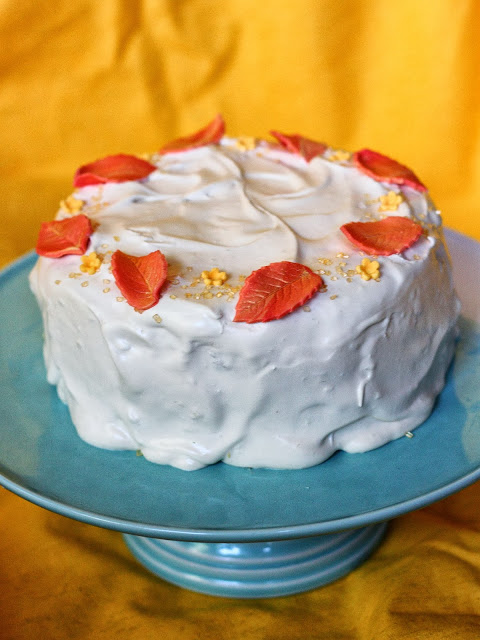Kakku oli maultaan hieman erilainen kuin normaali täytekakku. Hyvällä tavalla. Se oli raikas, eikä lainkaan liian makea, vaikka kinuskivaahtoa tuli sekä täytteeseen että kakun päälle. Eli vähän niin kuin raikas syksyinen ilma 🙂