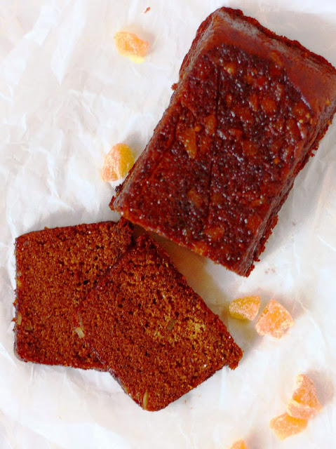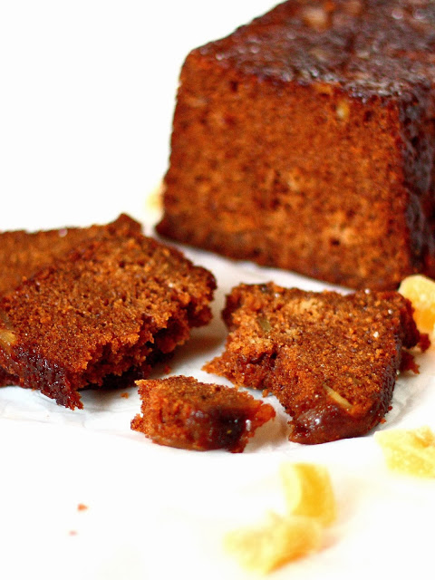 Kakun pieni miinus tuli hieman liian isoista inkiväärin palasista, jotka jauhotuksesta  huolimatta painuivat kakun pohjalle. Pienemmät palat pysyivät nätisti kakkutaikinan keskellä kypsyessä, joten asia korjaantuu kun leikkaa inkiväärinpalat pienen pieneksi.