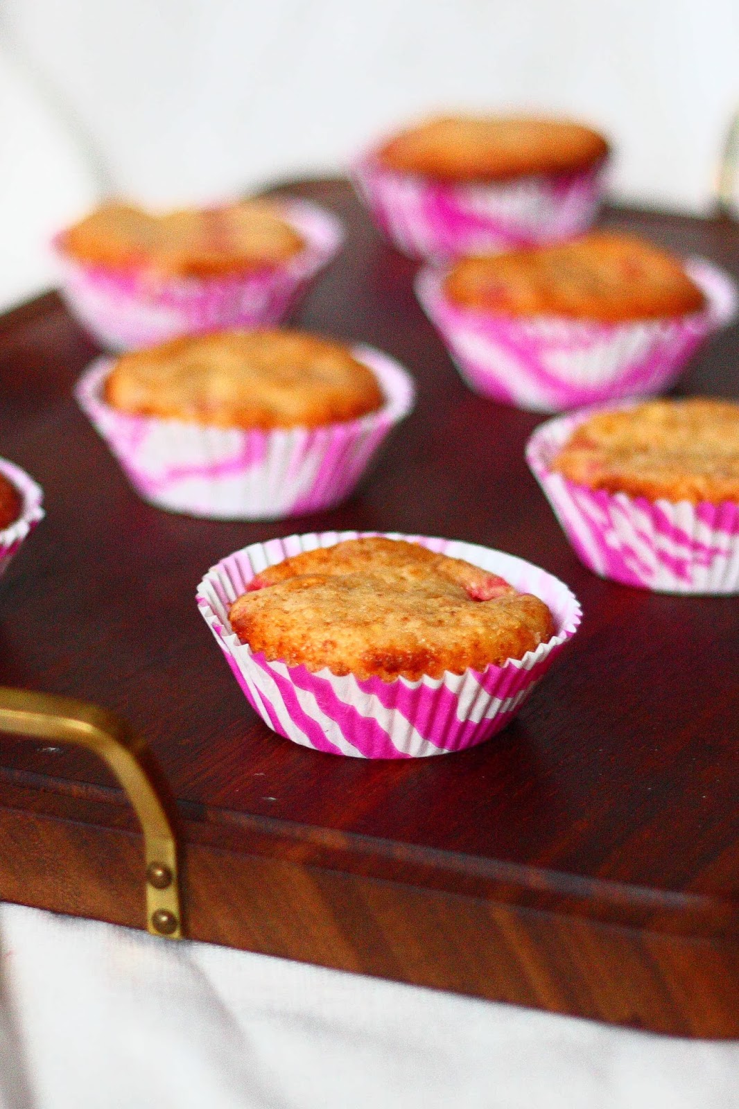 Mansikkaliköörin tislauksessa ylijäänyttä mansikkasurvosta jäi kippoon hieman mansikka-punaherukkapiirakan jälkeen. Koska uuni oli valmiiksi kuuma, halusin käyttää mansikat samantein johonkin. Punaherukoitakin vielä löytyi, joten yhdistin ne taas. Tällä kertaa marjat pääsivät muffineihin, joihin lisäsin myös valkosuklaata. Lisäsin mansikat taikinaan hienona soseena, eikä valmiissa tuotoksissa ollut havaittavissa lainkaan viinanmakua (kuten kävi piirakan kanssa..). Nämä olivat mielettömän hyvänmakuisia!