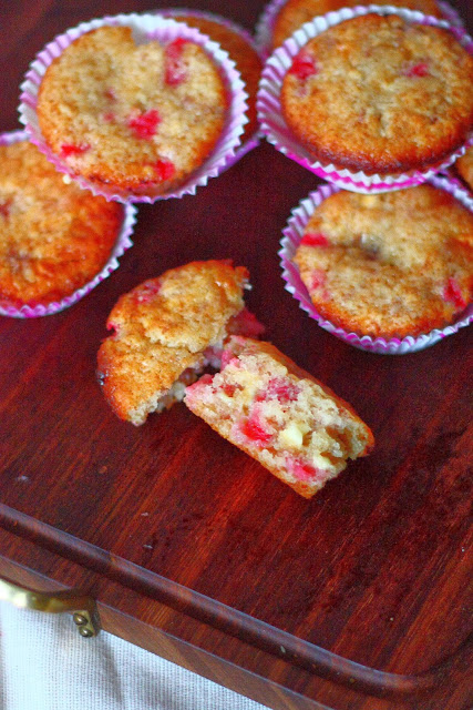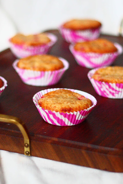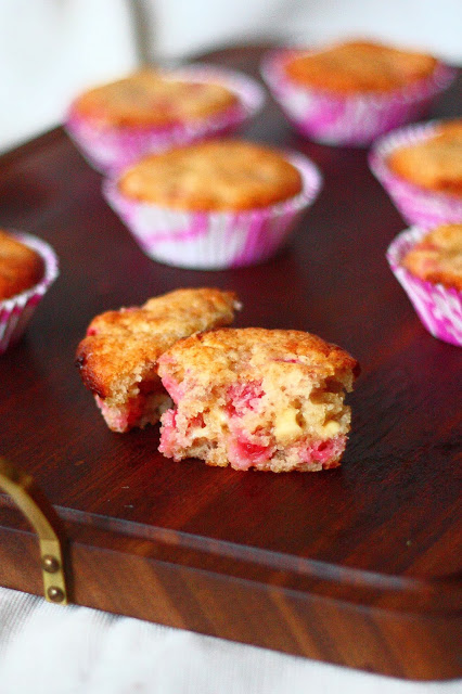 Valkosuklaa-punaherukkamuffinit mansikkalisällä