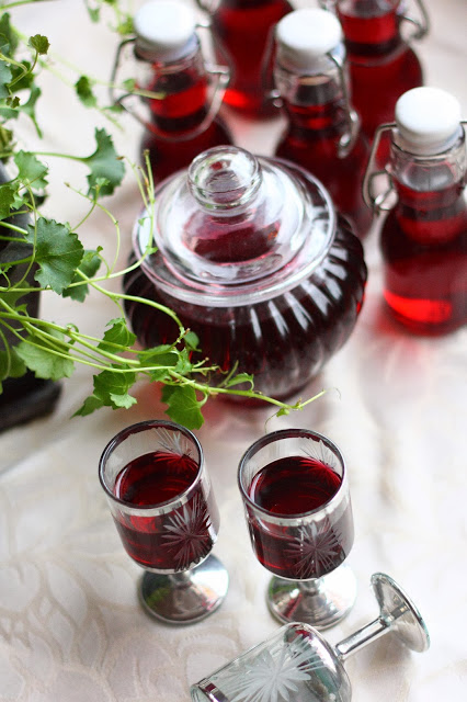 Tämä mustaherukkalikööri on tämän hetken suosikkini itsetehdyistä likööreistä punaherukkaliköörin rinnalla. Siinä on ihanan voimakas mustaherukan maku ja tuoksu. Aivan kuin pitelisi käsissään vahvaa mustaherukkamehua. Likööri ei tykännyt pahaa sitäkään, kun ”laimensin” sitä hieman mansikka- ja punaherukkaliköörillä. Se pysyi siitä huolimatta mukavan mustaherukkaisena.