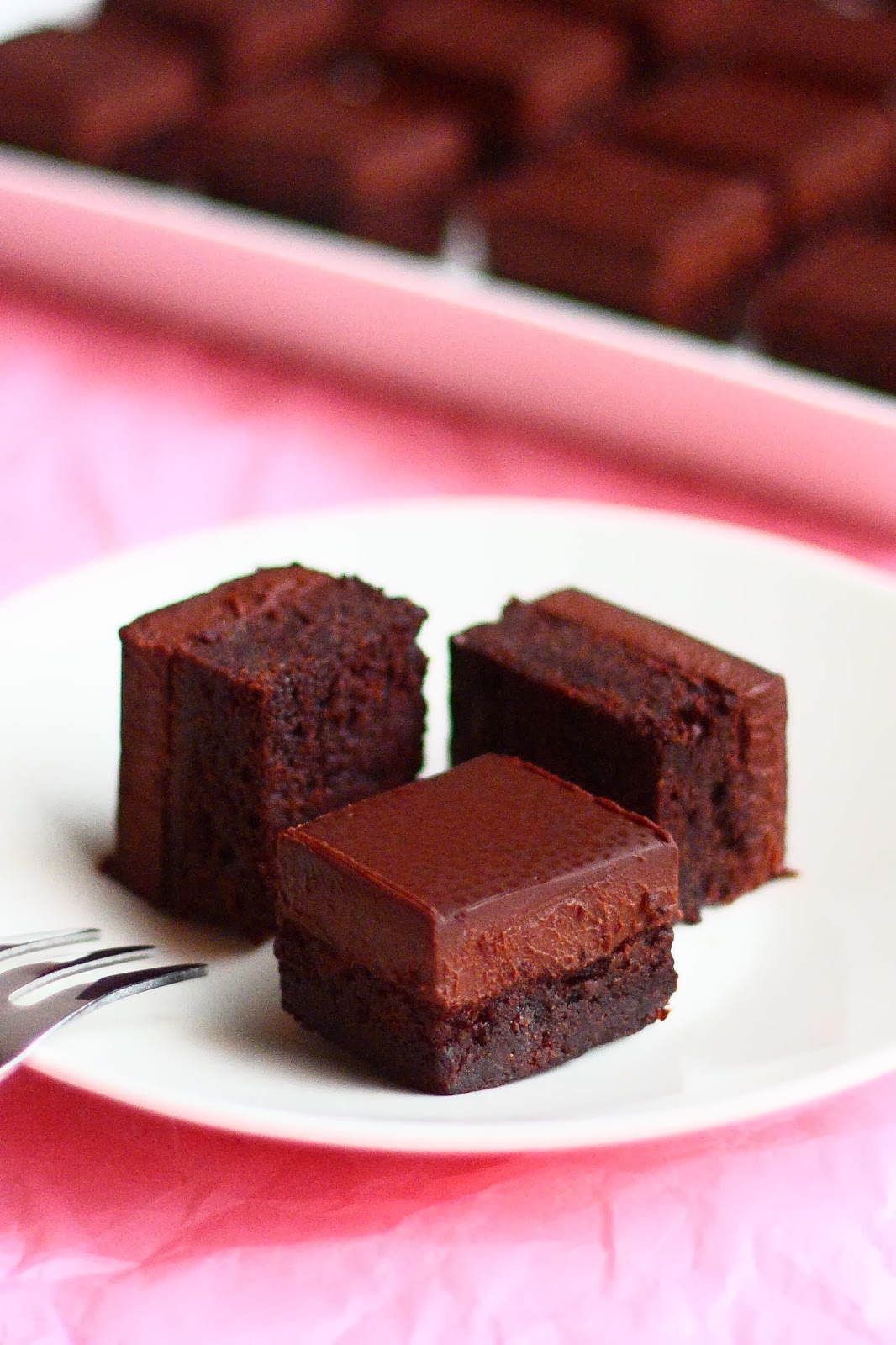 Vinkki: * Älä paista pohjaa läpikypsäksi. Se saa jäädä todella pehmeäksi, miltei raa’aksi keskeltä, niin lopputulos on ihanan tahmaisen mutakakkumainen. * Palat ovat parhaimmillaan makujen tasaannuttua vähintään yön yli. Ota palat huoneenlämpöön vähintään tunti ennen nauttimista. Huoneenlämpöisinä suklaan aromit pääsevät parhaiten esille.