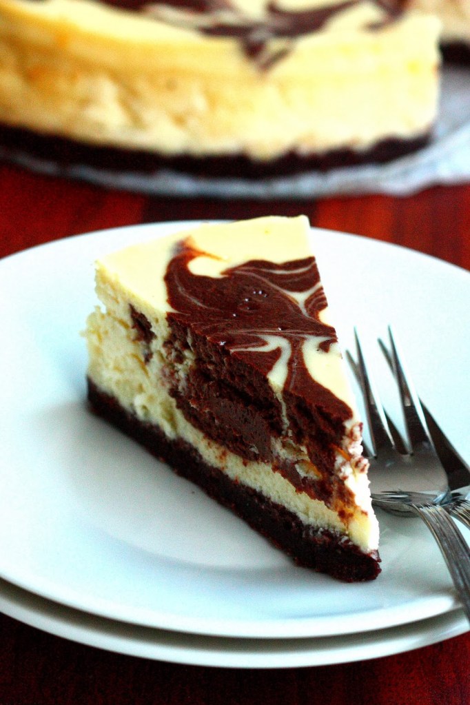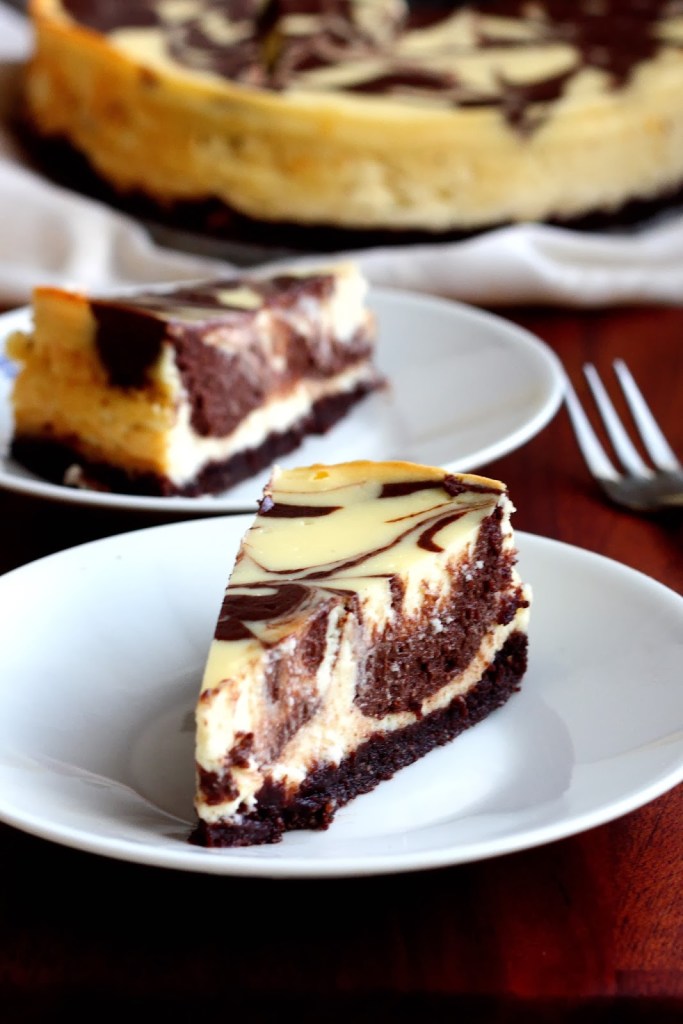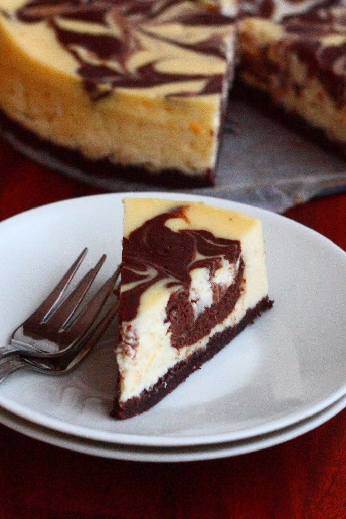 Olen pitkään halunnut testailla erilaisia juustokakkuja. Ne kun ovat niiin hyviä! Hyydytettävät juustokakut ovat melko helppoja ja niitä on helppo muokata erilaisiksi. Paistettavat juustokakut sen sijaan ovat ainakin minulle hieman kinkkisempiä, joten halusin harjoitella niitä. Useimmiten ne tuppaavat kypsyä hieman liikaa ja koostumus menee hieman tintummaksi kuin tarkoitus. Tein innostuksissani samantein kaksi juustokakkua, joista toinen oli tämä omasta mielestäni herkullinen marmoroitu suklaajuustokakku. Tässäkin paisto meni hitusen pitkäksi, mutta eipä se makuun vaikuttanut 🙂 Ja olihan se toinenkin tekemäni kakku herkullinen 😉 Siitä sitten myöhemmin lisää.