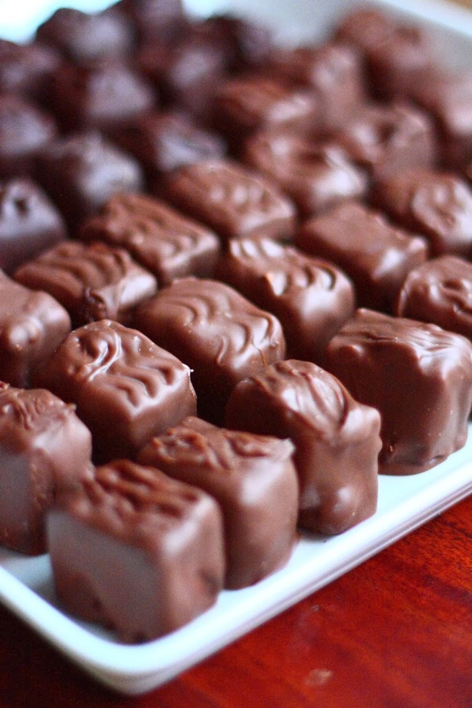 Tein ”Sniduista” pieniä minikokoisia suupaloja. Osan kuorrutin pelkällä maitosuklaalla ja osaan laitoin joukkoon myös tummaa suklaata. Molemmat suklaalaadut sopivat päälliseen oikein hyvin.