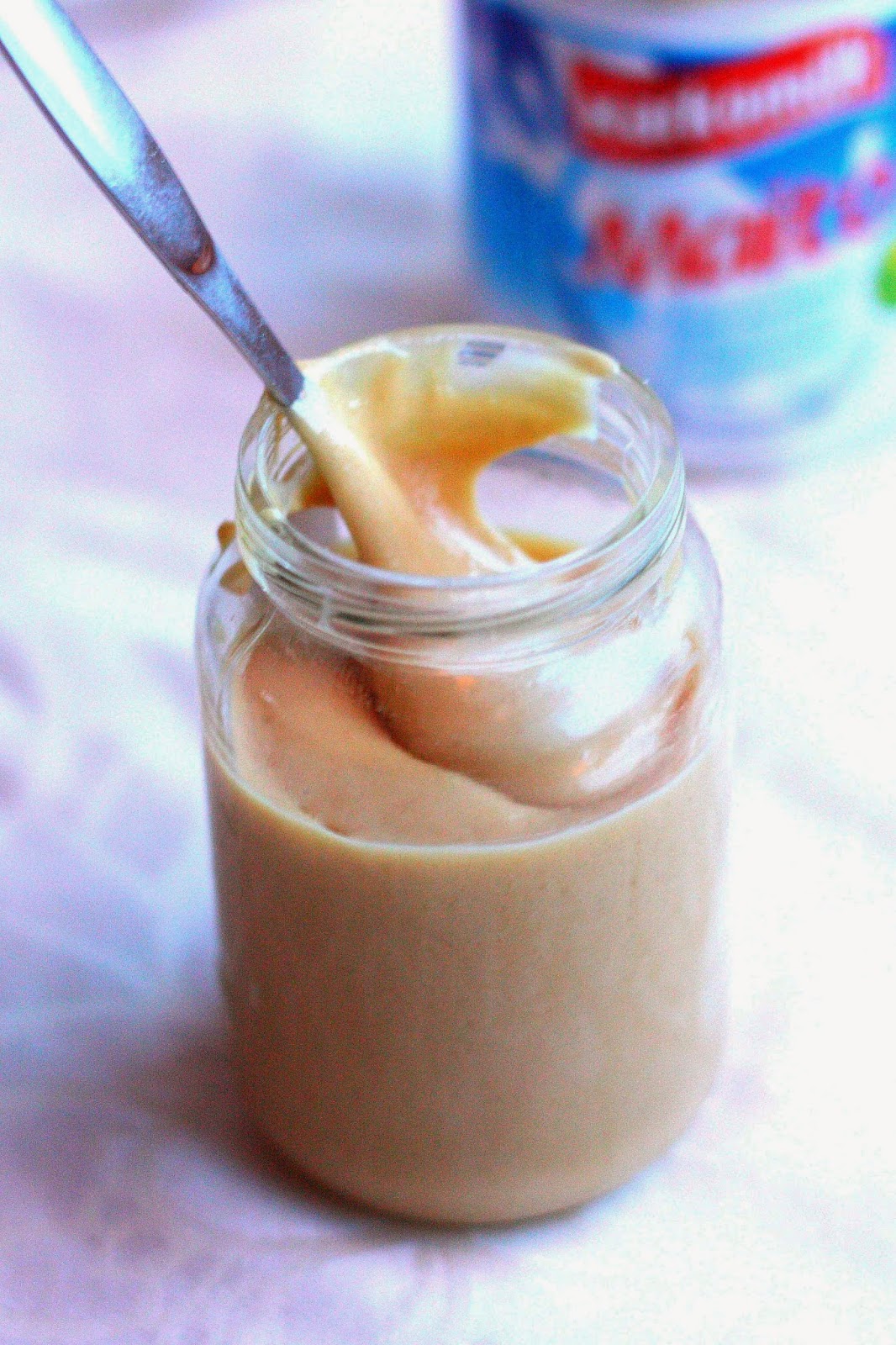 PÄIV. 24.5.2014 Kondensoitu maito ei jätä minua rauhaan, vaan löydän testaamasta hieman erilaisia versioita vähän väliä. Tänään käytin pohjana versio II ohjetta, mutta jätin glukoosisiirapin pois ja laitoin ruokosokerin sijasta tavallista sokeria hieman enemmän. Tein seoksesta hieman juoksevampaa vettä lisäämällä. Hyvin onnistui ja tästä tuli suosikkini näistä ohjeista. En keittänyt maitoa kinuskiksi, vaan käytin sitä sellaisenaan herkullisessa maapähkinävoijäätelössä. Tämä viimeisin kokeiluni on VERSIO III.