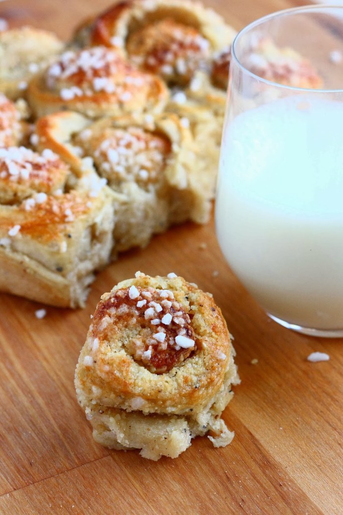 Taikina oli hieman erilainen kuin tekemissäni laskiaispullissa. Yleensä teen pullataikinan lisämällä rasva vasta alustamisen loppupuolella, mutta tähän taikinaan rasvan lisätään jo alussa. Pullista tuli oikein meheviä ja pehmeitä, vaikka jauhoja taisi mennä hieman enemmän kuin olisi ollut tarpeen ja taikinaakin vaivattua hieman liikaa. Käytin nimittäin taikinan tekoon yleiskonetta, ja pullataikinan teko sen kanssa on vielä harjoitusvaiheessa.. Laitoin jauhoja taikinaan 14 dl, mutta uskoisin pienemmänkin määrän riittävän, niin laitoin ohjeeseen tuon 13-14.