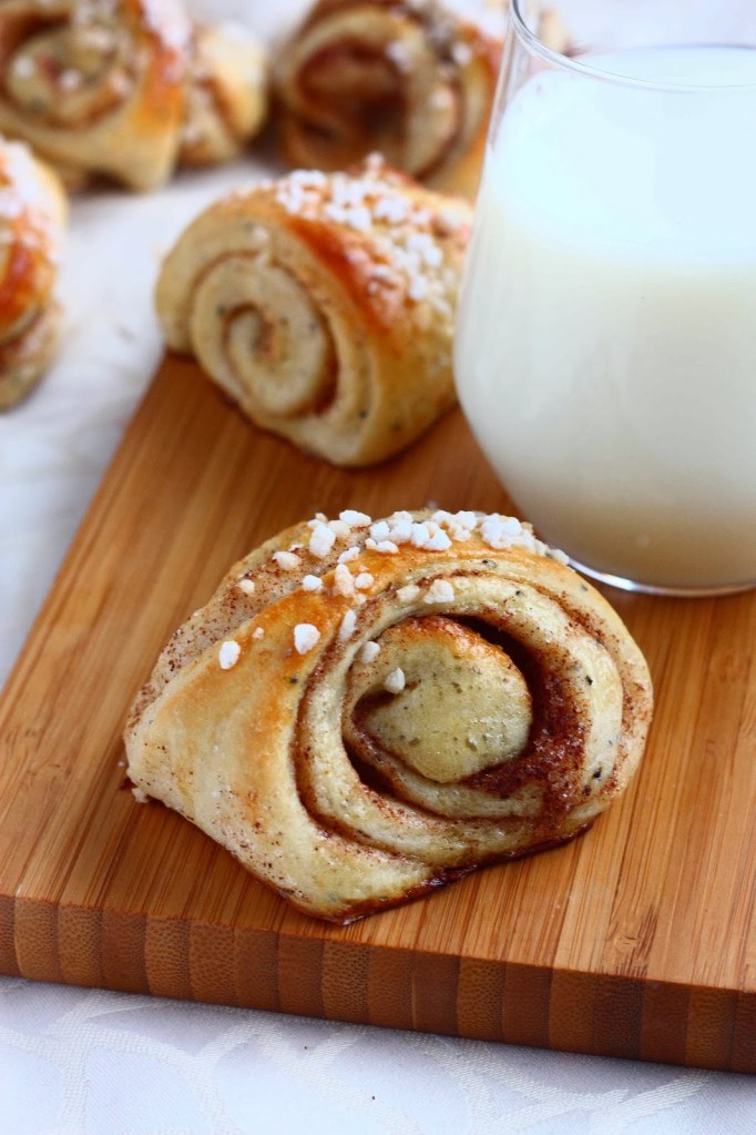 Taikina: 4 dl maitoa 1.5 rkl kardemummaa 50 g hiivaa 200 g voita huoneenlämpöisinä palasina 2 dl sokeria 1.5 tl suolaa 1 muna n. 13-14 dl jauhoja