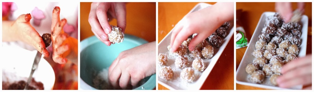 Tytär olisi vedellyt molempia palloja kaksin käsin, jos vain olisin antanut luvan. Oma maku sen sijaan on muuttunut lapsuusvuosista melkoisesti. Suklaiset pallot eivät olleet enää niin herkullisia kuin aiemmin, mutta kookospalloja olisin voinut napostella helposti enemmänkin 🙂