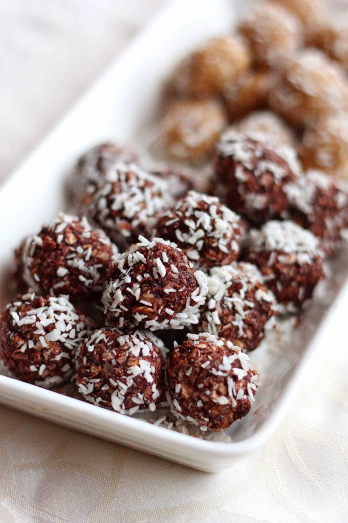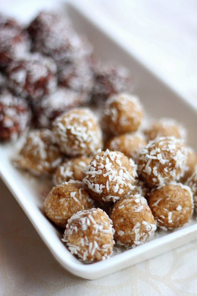 Ohje: Sekoita aineet keskenään. Pyörittele taikina palloiksi, koristele kookoshiutaleilla, laita tarjolle ja nappaa omasi ennen kuin muut ehtivät 🙂