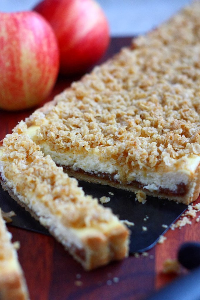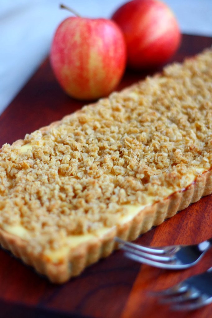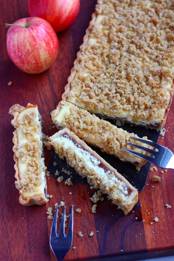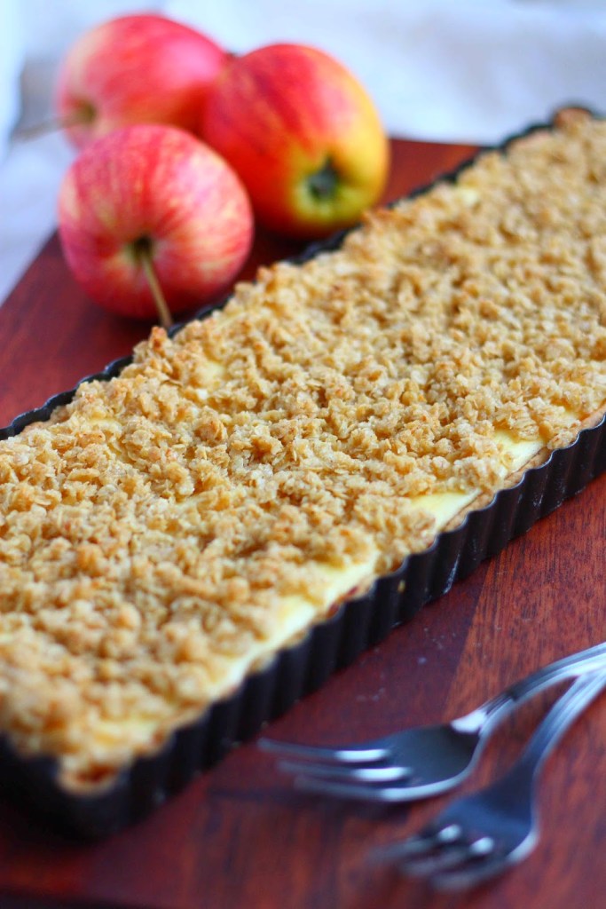 Omenapiirakka rahkatäytteellä ja kauramurulla