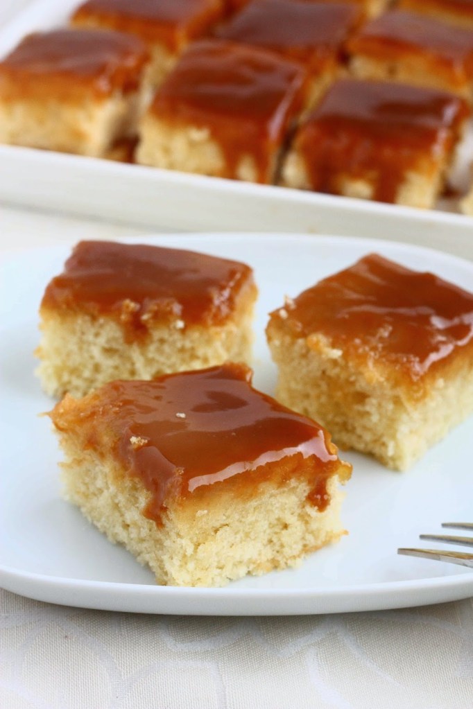 Tarjosin kummitytön perheelle myös näitä ihania omenaisia kinuskipaloja. Kyllä maistuivat! Pohja on aivan ihanan mehevä ja pehmeä. Päältä löytyy ohut kerros omenasosetta ja sen päältä vielä kinuskia.