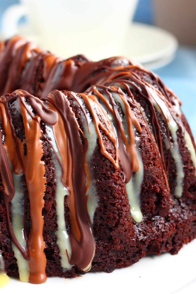 Mehevä suklaakahvikakku suklaa-piparmintturaidoilla