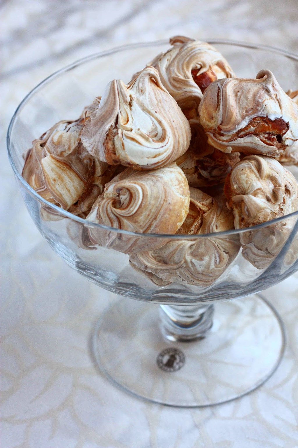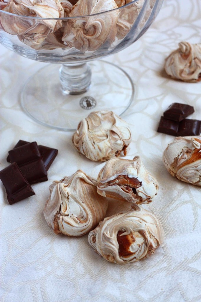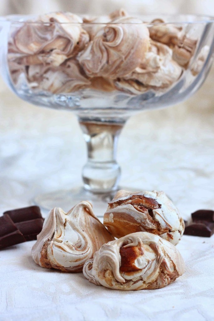 Löysin arkistojen kätköistä tämän alkuvuodesta tekemieni suklaamarenkien ohjeen. Muistelin, että marengit saivat alkunsa, kun tekemästäni vaniljakreemistä ja omenapiirakasta jäi pari valkuaista yli. Marengit ovat hyvä tapa hukata leivonnasta jääneitä valkuaisia, mutta jos perusmarenki ei maistu, voi marenkimassaa maustaa vaikka sulalla suklaalla. Helposti hieman erilaisia ja maukkaita makupaloja.