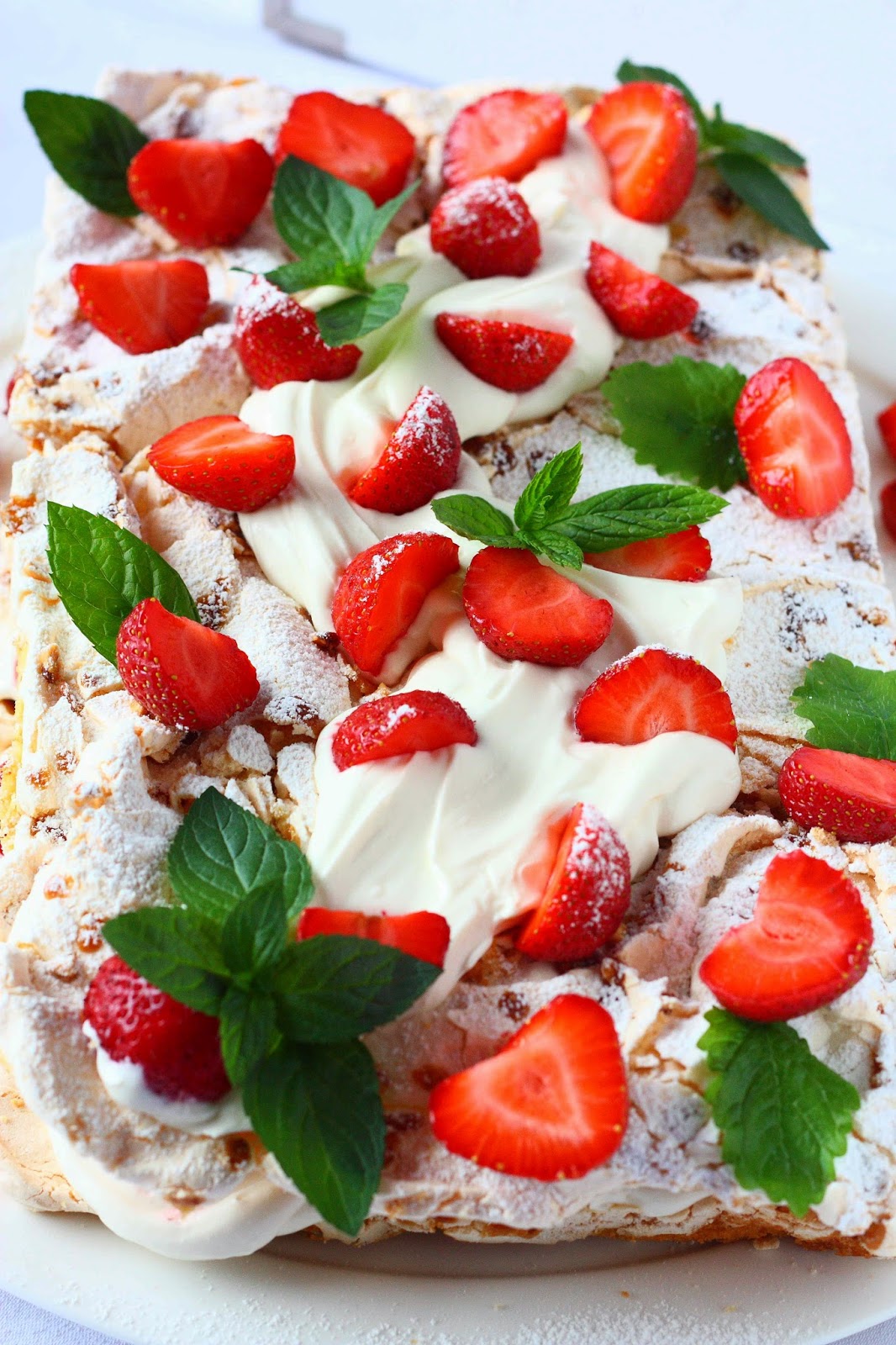 Päälle: 3 valkuaista 1.5 dl sokeria 0.5 dl Wienernougat crushia (tai mantelilastuja tai pähkinärouhetta)