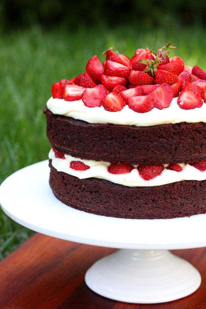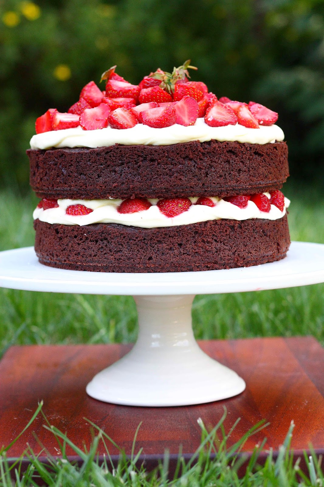 Mansikkakakku on ehkä kesän perinteisin kakku. Olen viime aikoina huomannut, että vaikka leivon paljon, puuttuvat leivontakokemuksistani monet suht perinteiset jutut. Mansikkakakku oli yksi niistä. Tai no onhan sitä mansikkakakkuja tullut tehtyä, mutta mansikat ovat aina olleet mousseina tai mukana on ollut reilusti omenaa, raparperia tai muuta mitä ei rehellisestä mansikkakakusta löydy. Mansikkakakussa kuuluu mielestäni olla reilusti mansikoita niin sisällä kuin päälläkin, lisäksi kermavaahtoa ja mielellään myös mahdollisimman maukas kakkupohja. Alunperin ajatuksissani oli tehdä sokerikakkupohjainen kakku, mutta sitten mielessä alkoikin pyöriä mehevän suklaakakkupohjan yhdistäminen tuoreisiin mansikoihin ja kermavaahtoon. Sitähän piti päästä kokeilemaan. Ja kyllä, kakusta tuli aivan ihanaa, tätä voisin sanoa melkein täydelliseksi!