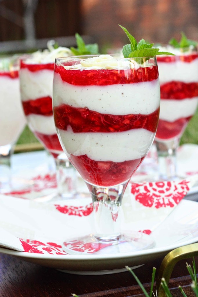 Sain eräältä lukijalta alkukesästä toiveen kerroskiisselin tekemiseen. Kuuma kesä on vienyt hieman voimia, enkä ole jaksanut hääräillä keittiössä entiseen tahtiin, mutta pari päivää sitten sain kiisselintekopuhdin. Ihastuin aiemmin tekemääni vadelma-raparperihilloon niin paljon, että tein jääkaapissa lojuneista raparperin paloista vadelmaa sisältävän kiisselin ja sen rinnalle aitoa vaniljaa sisältävän, täyteläisen ja aivan ihastuttavan makuisen maitopohjaisen vaniljakiisselin. Raparperikausi alkaa olemaan aikalailla ohi, mutta laitan tämän ohjeen tänne, sillä kiisseliin voi raparperin sijasta laittaa vaikka tuplasti vadelmaa tai vaikka näin mustikka-aikaan mustikoita!
