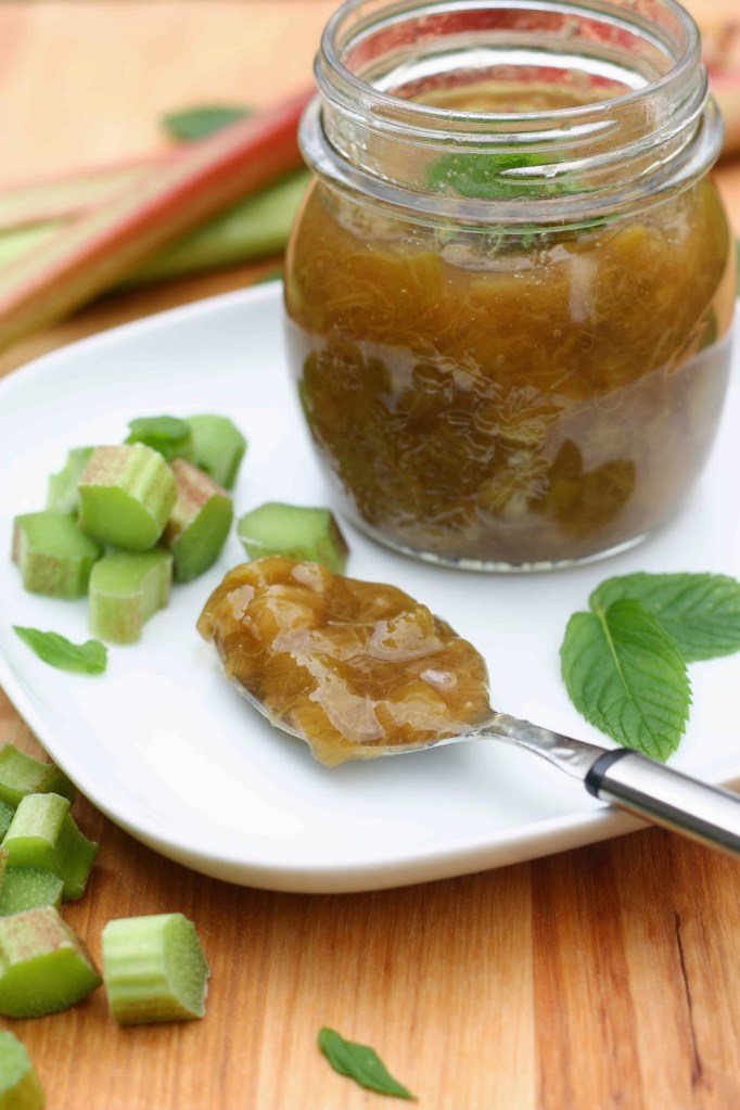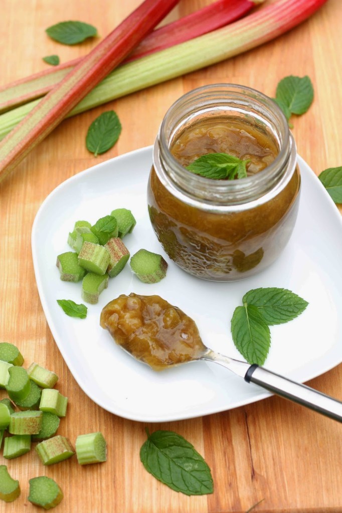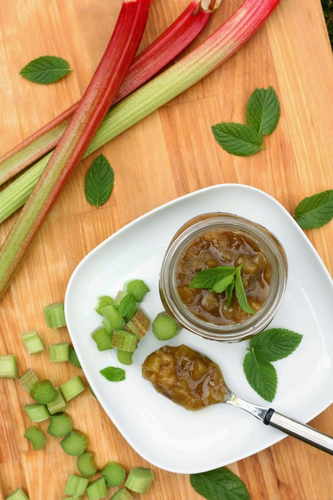 Jääkaapissa oli vielä jokunen isältäni saatu raparperin varsi. Ne suorastaan pyysivät päästä yhteen mintun kanssa, joten aloin keittämään minttuista raparperihilloa. Yhdistelmä oli todella toimiva. Hillosta tuli aivan ihanaa!