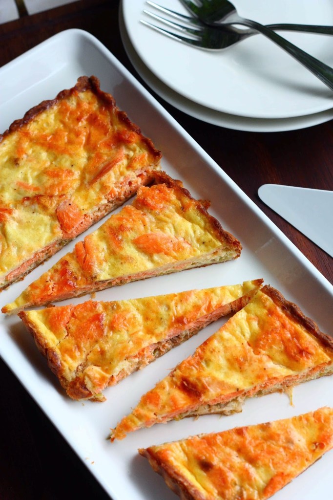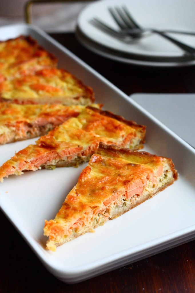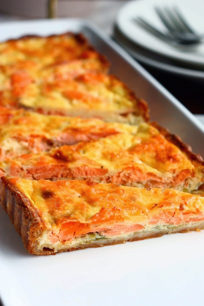 Tässä tulee yltäkylläistä makeaa herkkutulvaa tasapainottamaan maukkaan purjoa sisältävän savulohipiirakan ohje. Piirakka sai alkunsa kun huomasin lähestyvät parasta ennen päiväykset savulohessa ja kermaviilissä, lisäksi jääkaapissa nökötti myös yksinäinen purjo. Pohjaksi tein jälleen lempparipohjani eli helpon, nopean ja maultaan tosi hyvän rahkavoitaikinapohjan. Eipä tullut yhtään hassumpi piirakka 🙂