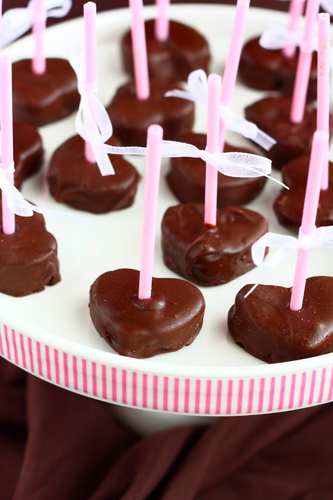 Tytön syntymäpäivien juhlatarjoilujen kirjoittaminen jatkuu tällä herkullisilla kakku-tikkari-tyyppisellä ohjeella. Tein pöytään pieniksi makeiksi suklaakuorrutettuja karamelli-kakkutaikinapopseja, sekä tikulla että ilman. Osaan tiputin vielä muutaman tipan piparminttuaöljyä. Näistä tuli tosi hyviä!