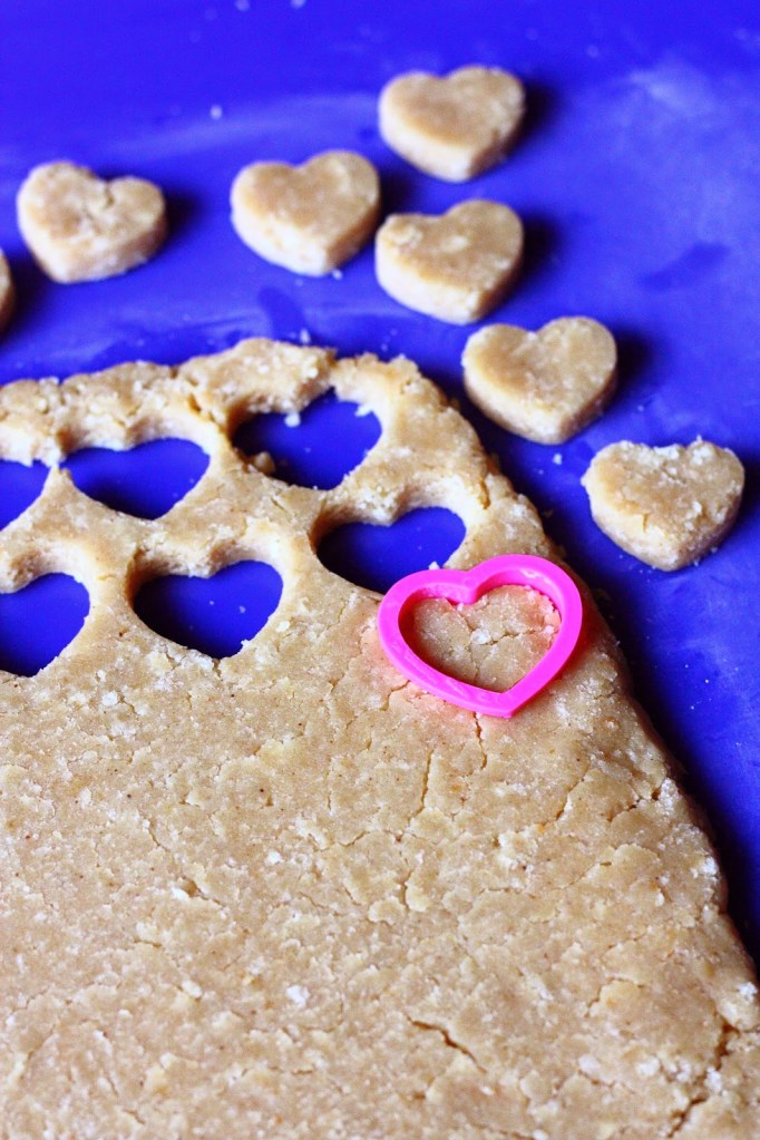 Kaulitse kevyesti jauhotetulla alustalla paksuksi (n. 7-8 mm) n. 22 x 22 cm kokoiseksi levyksi. Ota pienellä muotilla palasia. Homma näyttää tässä vaiheessa suunnilleen tältä.
