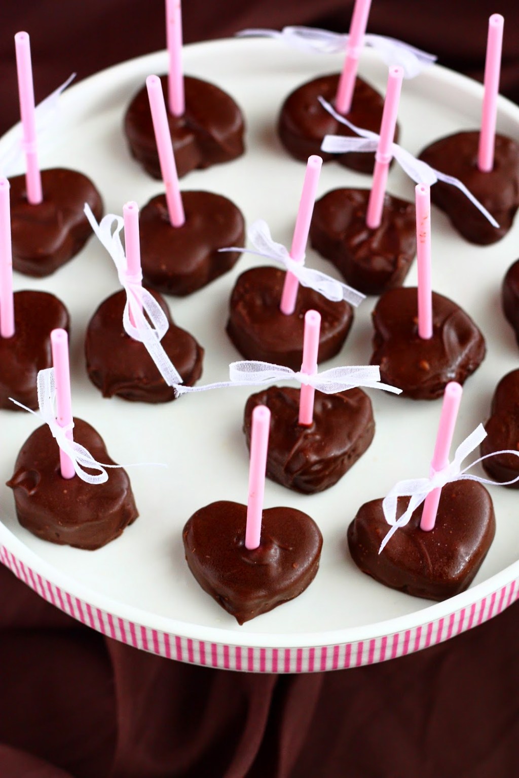 Koristele vielä haluamallasi tavalla esimerkiksi liruttamalla sulaa suklaata pakastepussin kulmaan tehytä reikää apuna käyttäen.Vinkki: * Kuorruttamiseen voi käyttää joko suklaata tai Candy Melts-nappeja. Itse käytän näissä Candy melts-nappeja, vaikka niiden maku ei ole läheskään niin hyvä kuin oikean suklaan. Nämä käyttämäni napit sisältävät hieman aitoa kaakaota, joten ovat maultaan hieman suklaisemman makuisia kuin pelkät vaniljaiset candy melts-napit. Käytän niitä vain siksi, että ne suttaavat vähemmän ja pinta kovettuu suhteellisen nopeasti. Lisäksi Candy Melts-nappeja käytettäessä popsien pinta tulee sen verran kovaksi, että se kestää sormien välissä pitelemisen. Ja tämä on vain hyvä juttu lasten kanssa (= vähemmän suttua suklaasormista 😉 ). Suklaan heikkoja puolia on siis se, että ilman temperointia se vaatii usein pidemmän kovettumisajan ja myös pinta jää hieman harmaaksi. Niin ja temperoimaton suklaa sulaa sormien välissä tosi nopsaan. Mutta maku on toki parempi, aidompi.