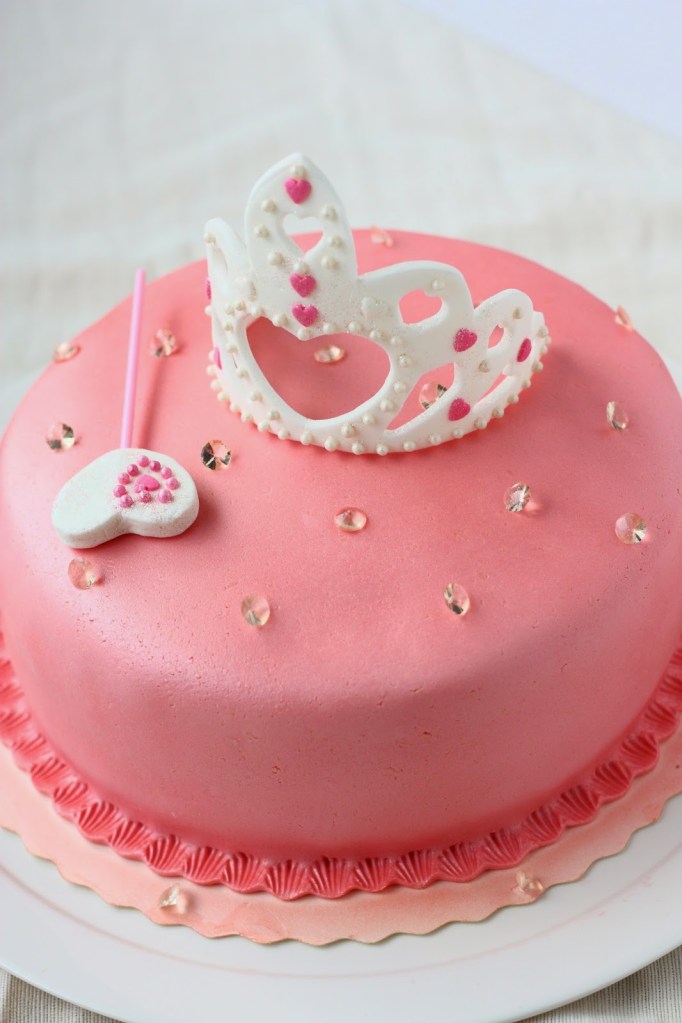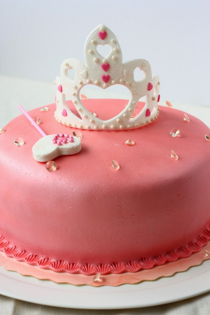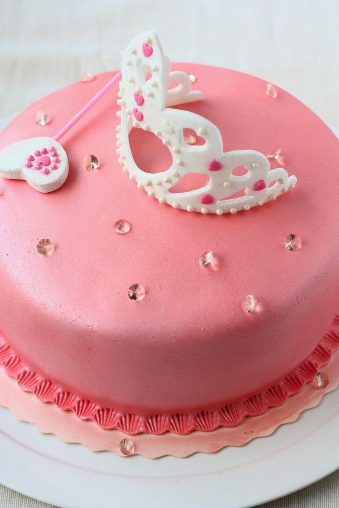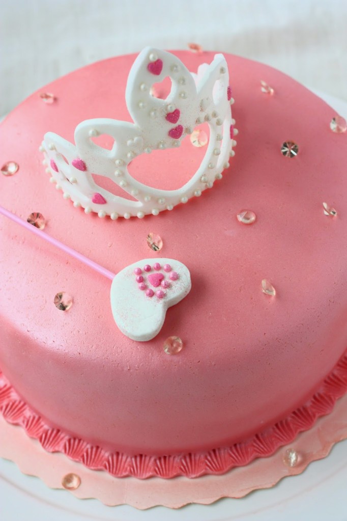 Sukulaistyttömme vietti 3-vuotispäiväänsä jokin aika sitten. Toiveena kakun suhteen oli prinsessa. Tytön äiti esitti toiveen tiarasta, valtikasta (vai mikä se heiluva sauva tikun päässä onkaan) ja timanteista. Ripauksella vaaleanpunaista syntyi tällainen prinsessatyylinen kakku.