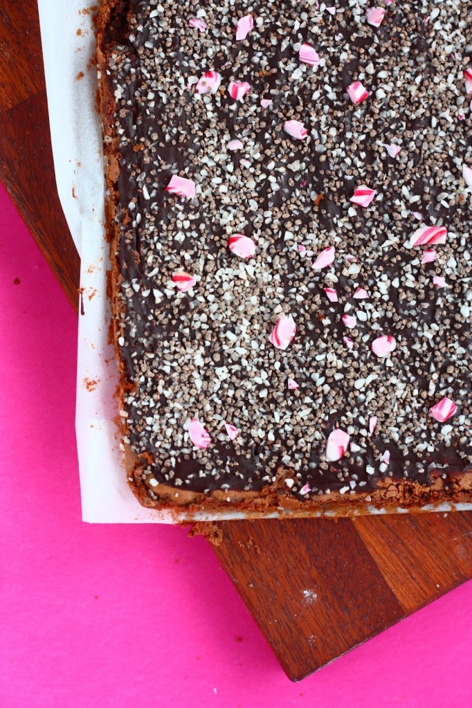 Päälle löysin kaapista vielä piparmintun makuisia karkkikeppejä. Murskasin ne koristeeksi pinnalle. Pelkkä Mariannerouhe toi aika vaisusti mintun makua, joten rouhitut karkkikepit toimivat hyvin lisämaun tuojina. Tosin ne olisi voinut pilkkoa vieläkin pienemmiksi, sillä ainakin itseäni hieman häiritsi isommat, kovat kokkareet tuoreen mutakakkubrownieksen joukossa. Tosin karkkikepitkin sulivat muutamassa päivässä pehmeiksi. Mutta kokonaisuudessaan siis oli tosi ihanaa, nams!