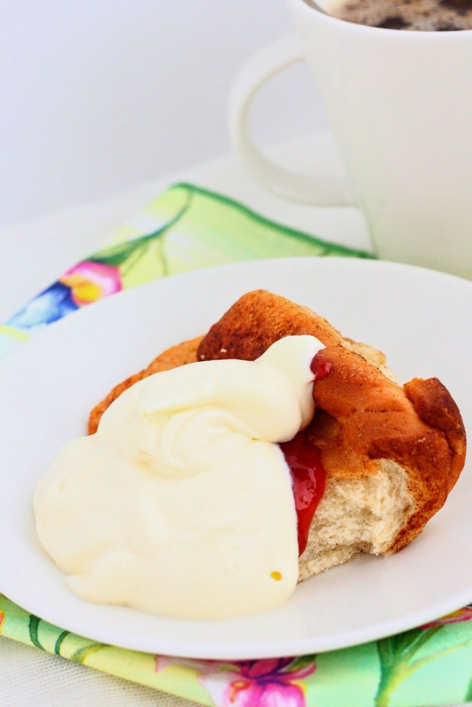 Pelkkää pullaa mutustaessani olisin kaivannut mukaan hieman enemmän makua, mutta hillon ja vaniljavaahdon kanssa sitä ei tarvittu. Pullataikinasta puuttui normipullaan kuuluva kardemumma. Maku muistuttikin enemmän korppuja kuin pullaa. Yhtäläisuudet korppuun loppuisivat makuun, sillä koostumus oli jotain aivan muuta; erittäin pehmeä ja hieman höttöinen. Tämä ei kauaa meillä vanhentunut, hyvä kun ehti pikaseen räpsäsemään kuvat 😉
