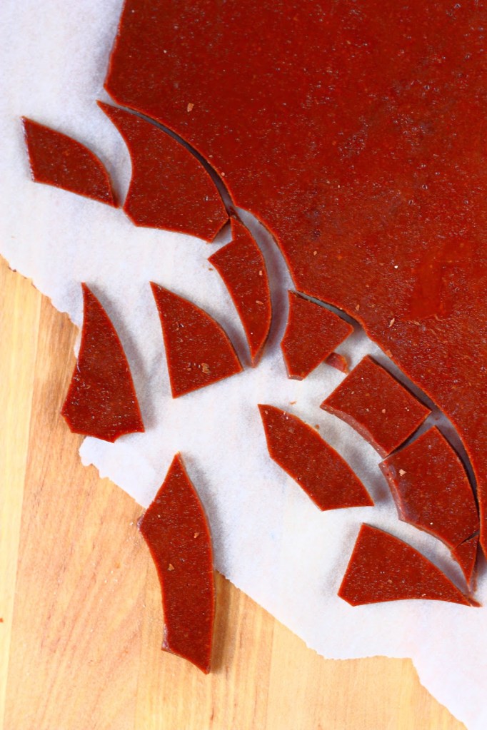 Kaada seos leivinpaperille. Aseta toinen leivinpaperi massan päälle ja kauli ohueksi levyksi. Anna jäähtyä hetki. Poista leivinpaperi kaulitun massan päältä ja annan jäähtyä ja kovettua kokonaa..