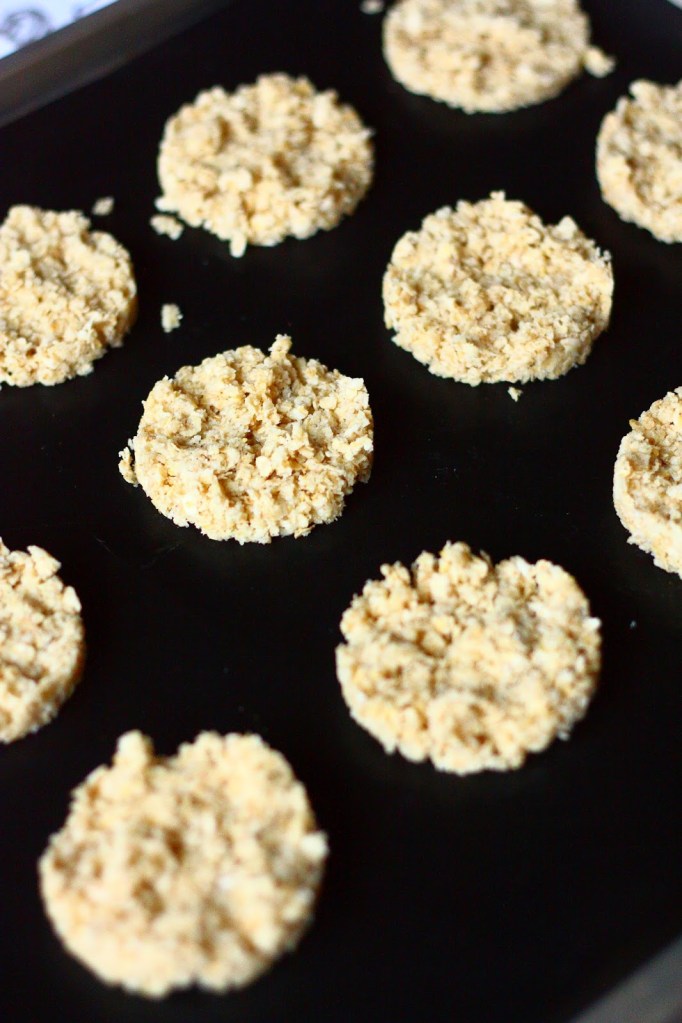 Taikinan pohja muodostui omenakaurapaistoksesta tutusta kauramurupäällisestä. Jos pitää siitä, rakastaa todennäköisesti myös näitä. Vaikka näistä ei tullut aivan alkuperäisversioiden keksien näköisiä, hyviä olivat nämäkin. Usein tällaisista kekseistä tulee tiiviitä ja koviakin, mutta nämä eivät olleet sellaisia. Salaisuus on taikinan käsittelemisessä muotoiluvaiheessa. Se vain painellaan kevyesti muotoonsa. Toki samasta taikinasta pystyy helposti tekemään myös kovempia versioita painelemalla taikinan tiiviimmäksi. Tekee miten päin vain, suosittelen kokeilemaan 🙂
