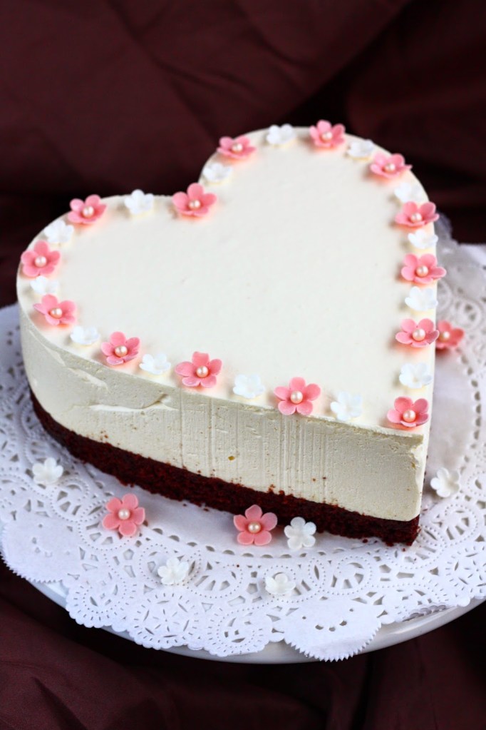 Äitini halusi tarjota ystävälleen pienen, raikkaan kakun syntymäpäivänsä kunniaksi. Kahvipöytään päätyi sydämen mallinen kakku, jonka pohjassa oli mielettömän mehevä suklaakakkupohja sekä raikas, Järisyttävän hyvästä sitruunajuustokakku-ohjeesta tuttu täyte pienin muutoksin. Hyvää kuulemma oli ollut 🙂