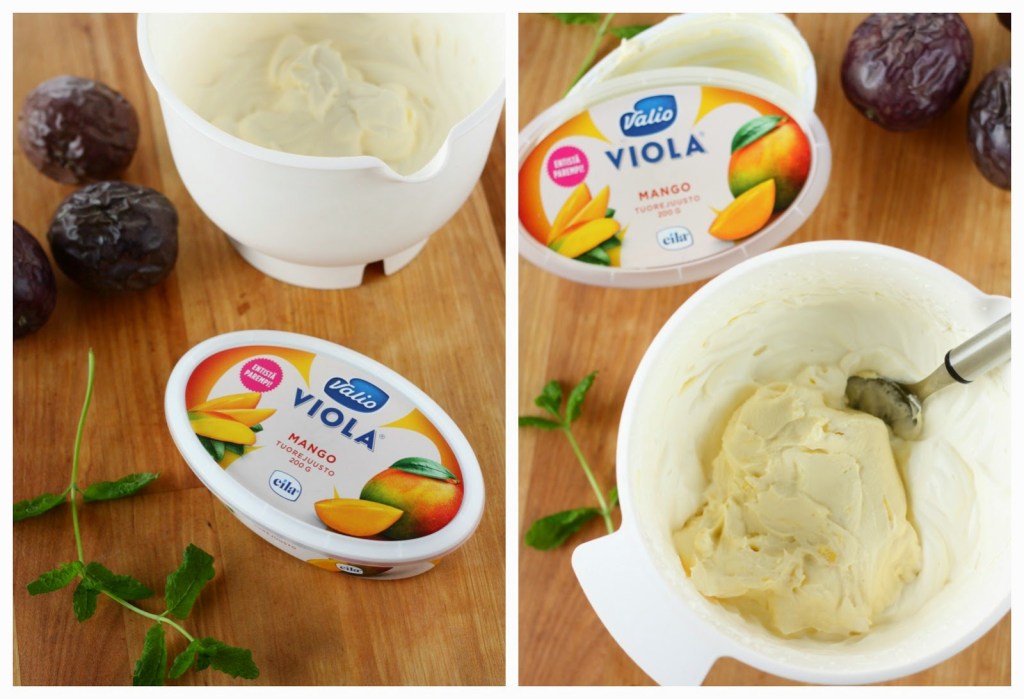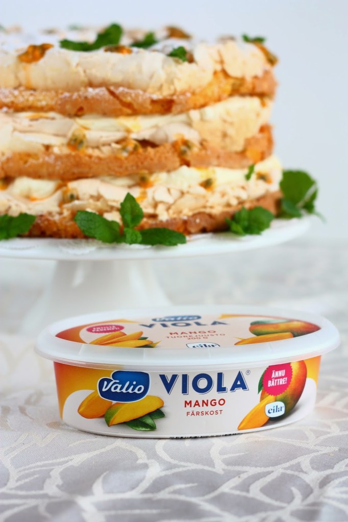 Tein elämäni ensimmäisen Britakakun viime vuonna. Ihastuin kakun makuun ja sen helppotekoisuuteen. Siitä lähtien mielessäni on ollut erilaiset yhdistelmät. Nyt kun sain blogiringin kautta käsiini uudistuneita Valio Viola® tuorejuustoja, päätin pitkästä aikaa tehdä Britan ja yhdistää mangon makuiseen tuorejuuston tuoreen passionhedelmän kanssa. Ja kyllä kannatti!
