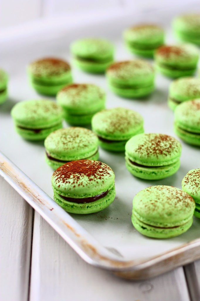 Macaron-leivokset piparminttu-suklaa-, Lemon curd- ja maapähkinävoi-täytteillä (gluteeniton)