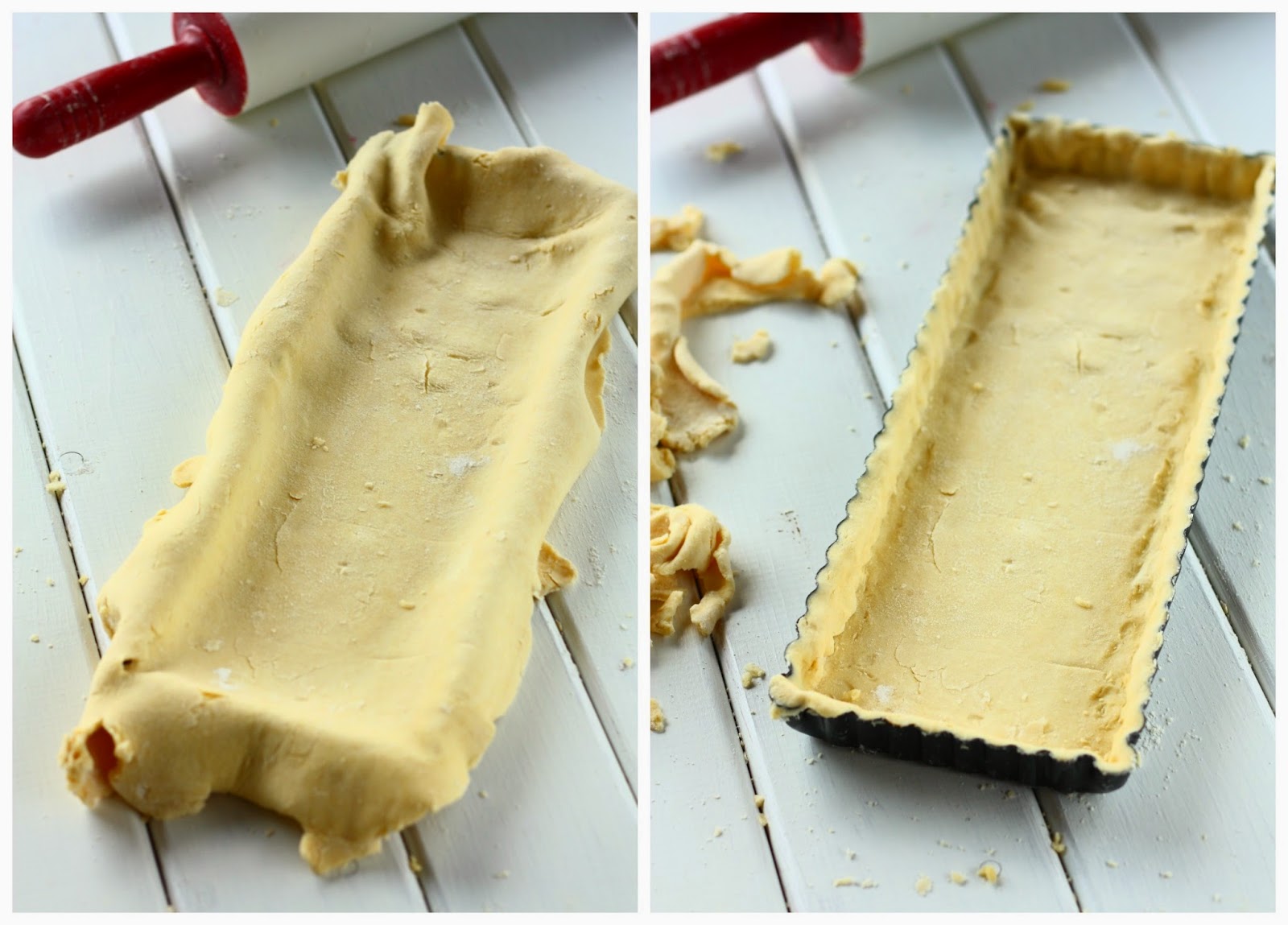 Tee samoin toisella taikinan palalle. Nosta vuoat jääkaappiin täytteen teon ajaksi.