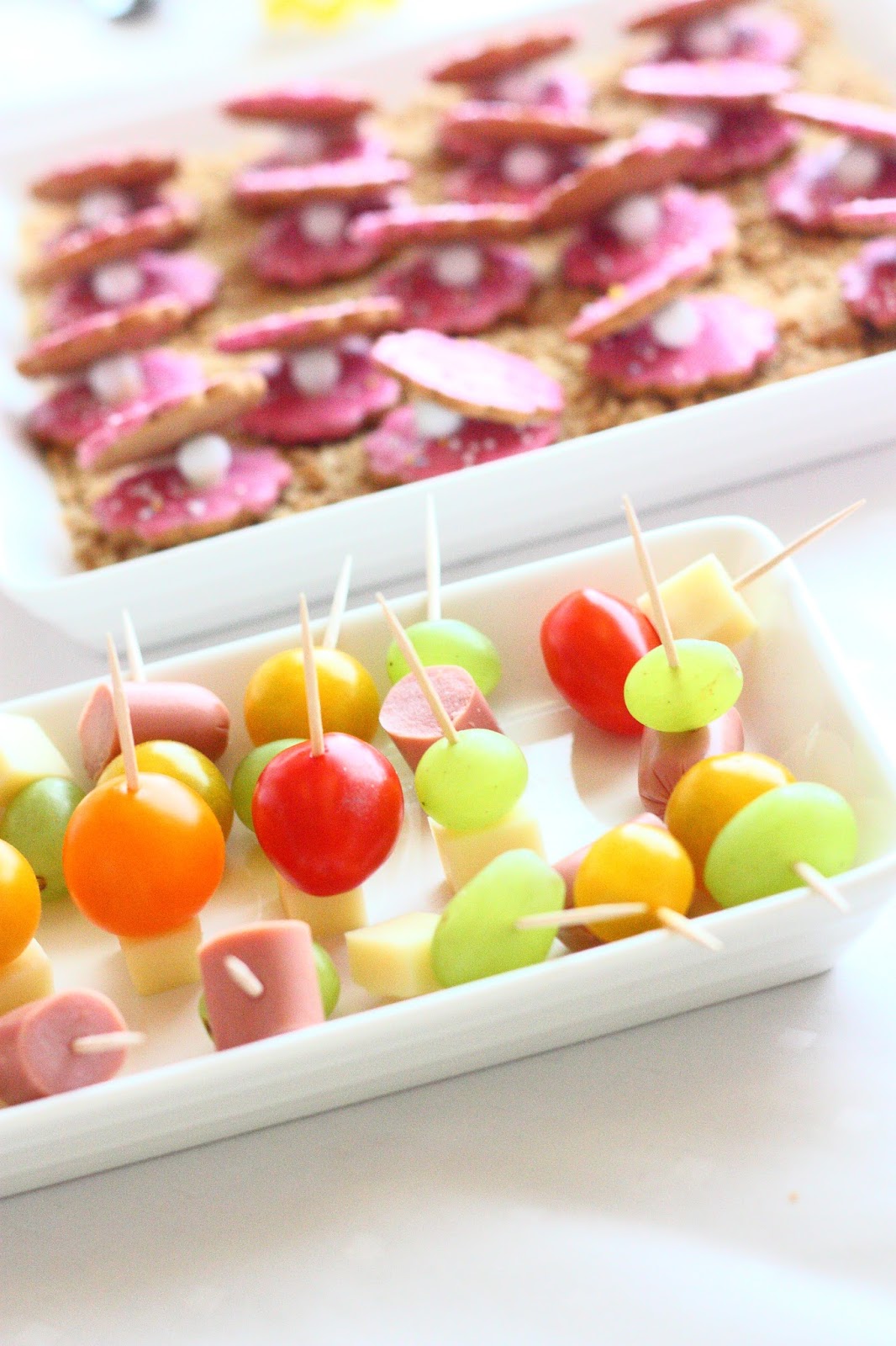 Tehtiin näitä simpukka-keksejä jo suklaisjuhliin ja siellä ne katosivat hetkessä. Ja siis todellakin katosivat! Käänsin selkäni hetkeksi ja kun seuraavaksi katsoin lautaselle, siellä ei ollut kuin pari keksiä jäljellä. Tosin nekin humpsahtivat lopulta lasten suihin. 🙂 Kaverisynttäreillä ei tällaistä katoamistemppua tapahtunut simpukkakekseille, mutta sielläpä tehtiin irtokarkkitikkuja eli lävistettiin pehmeitä hedelmäkarkkeja tuolla samaisella tikulla, joka oli ollut käytössä nakki-tomaatti-juusto-viinirypäletikuissa.
